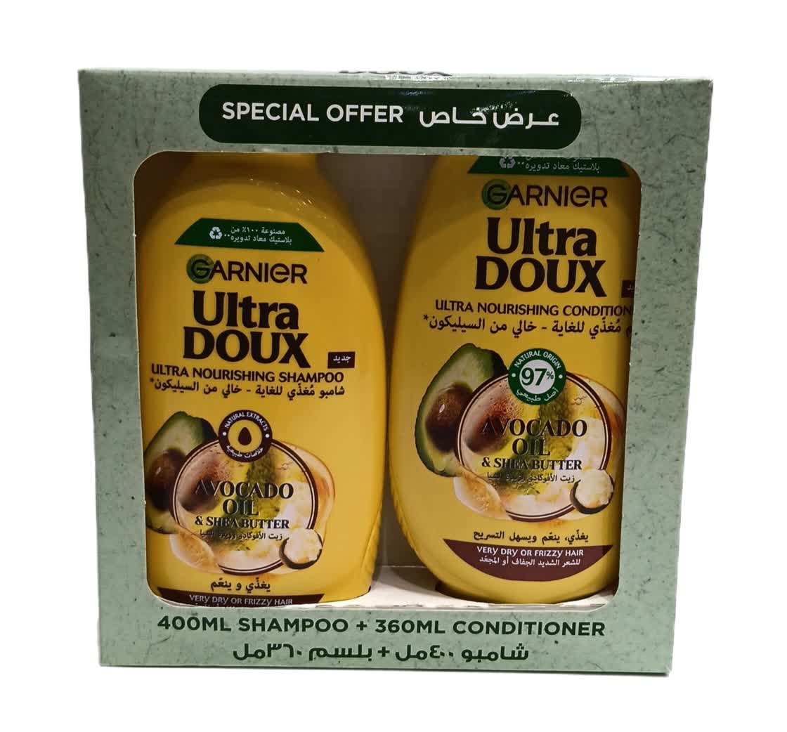 غارنييه الترا دو شامبو مغذي الشعر بزيت الأفوكادو و زبدة الشيا 400مل + بلسم 360مل