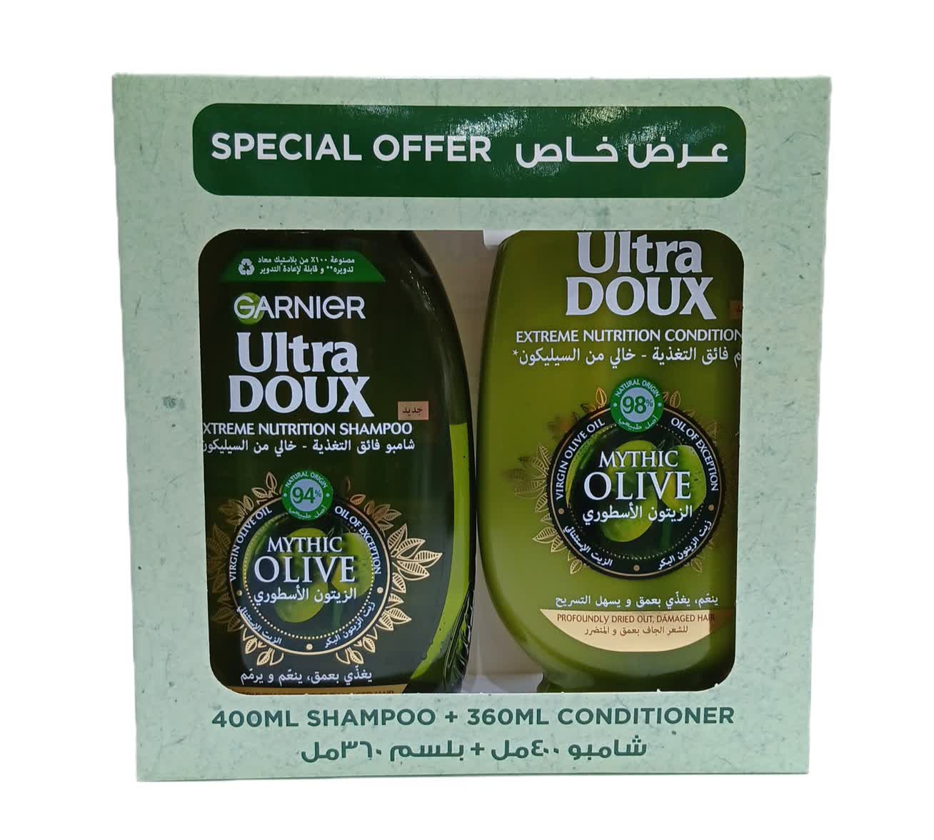 غارنييه الترا دو شامبو الشعر فائق التغذية بالزيتون الاسطوري 400 مل + 360 بلسم