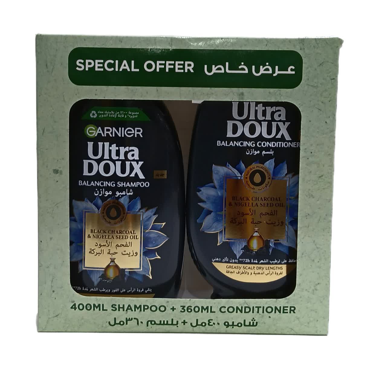 غارنييه الترا دو شامبو الشعر بزيت حبة البركة والفحم الاسود 400 مل + بلسم 360 مل