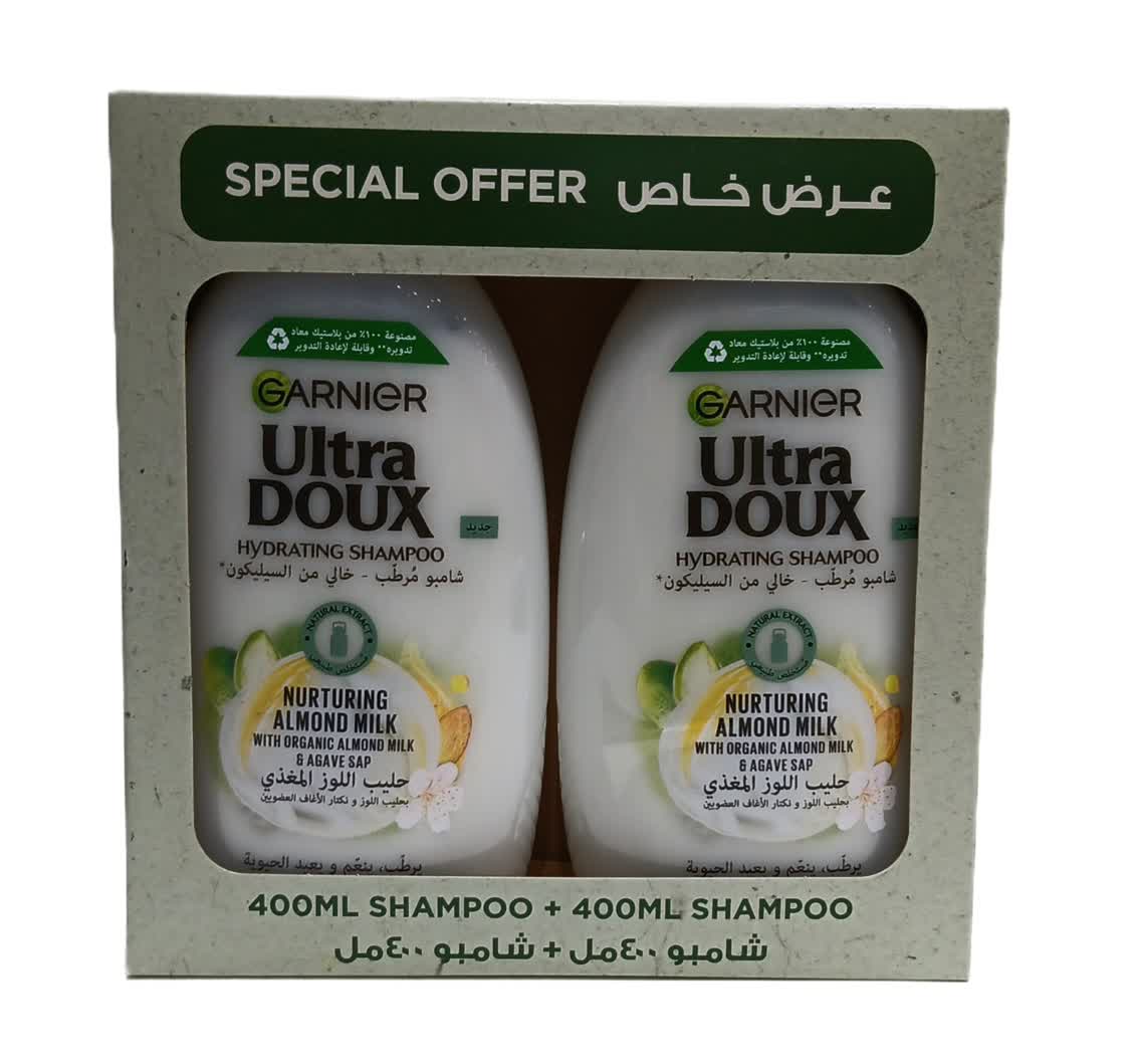 غارنييه الترا دو شامبو الشعر بحليب اللوز المغذي 400مل + 400 مل