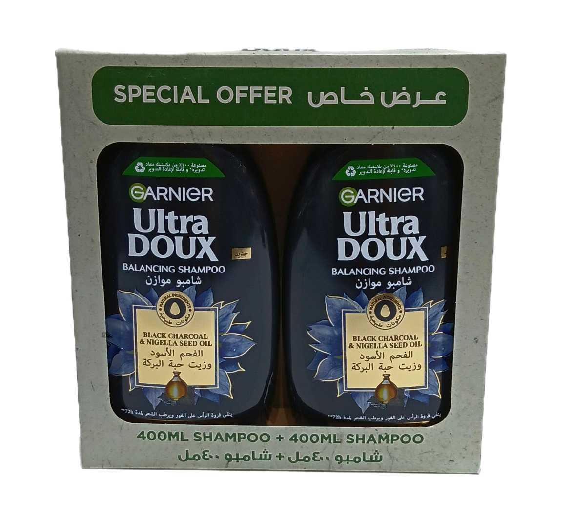 غارنييه الترا دو شامبو الشعر بزيت حبة البركة والفحم الاسود 400 مل + 400 مل