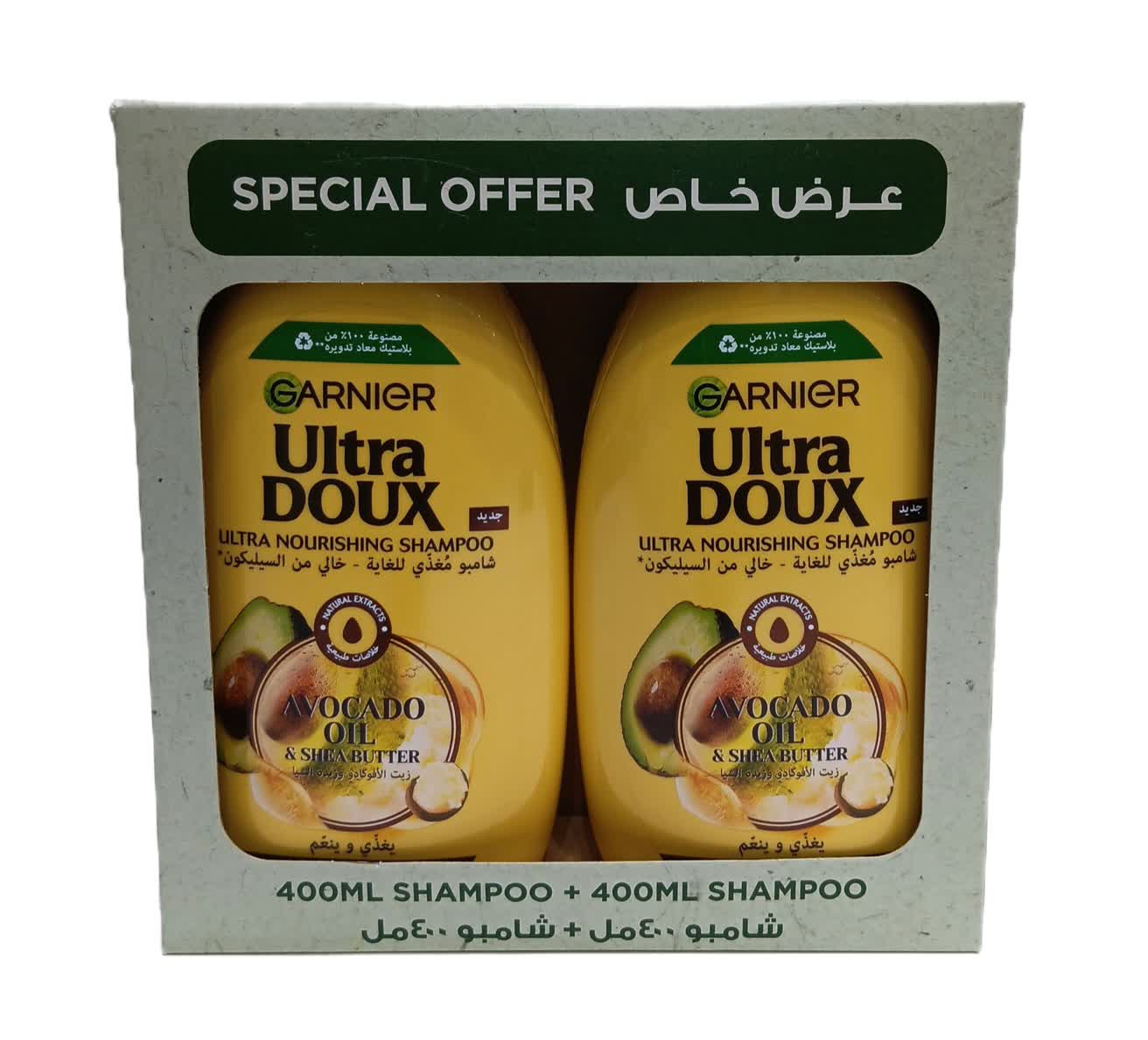 غارنييه الترا دو شامبو الشعر بزيت الافوكادو وزبدة الشيا 400 مل + 400 مل