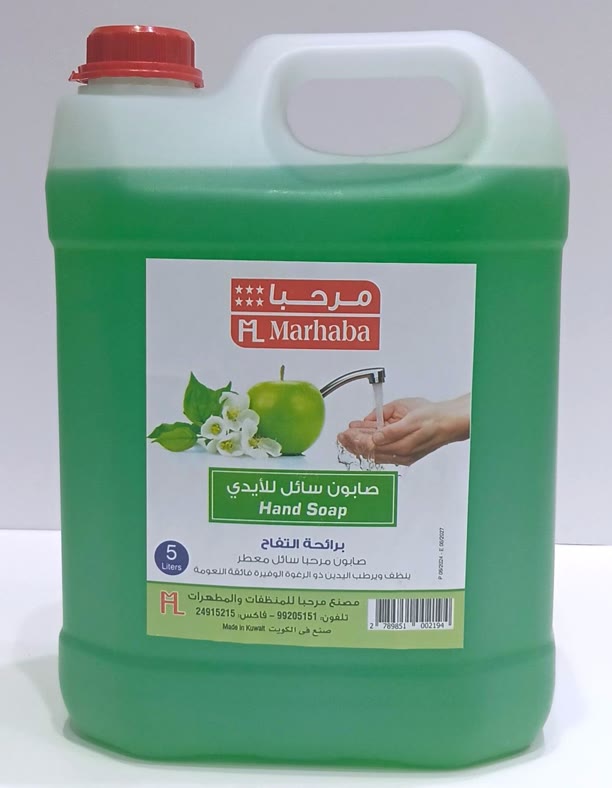 مرحبا صابون سائل ومعطر للايدي برائحة التفاح 5 لتر ( رغوة غسيل اليدين )