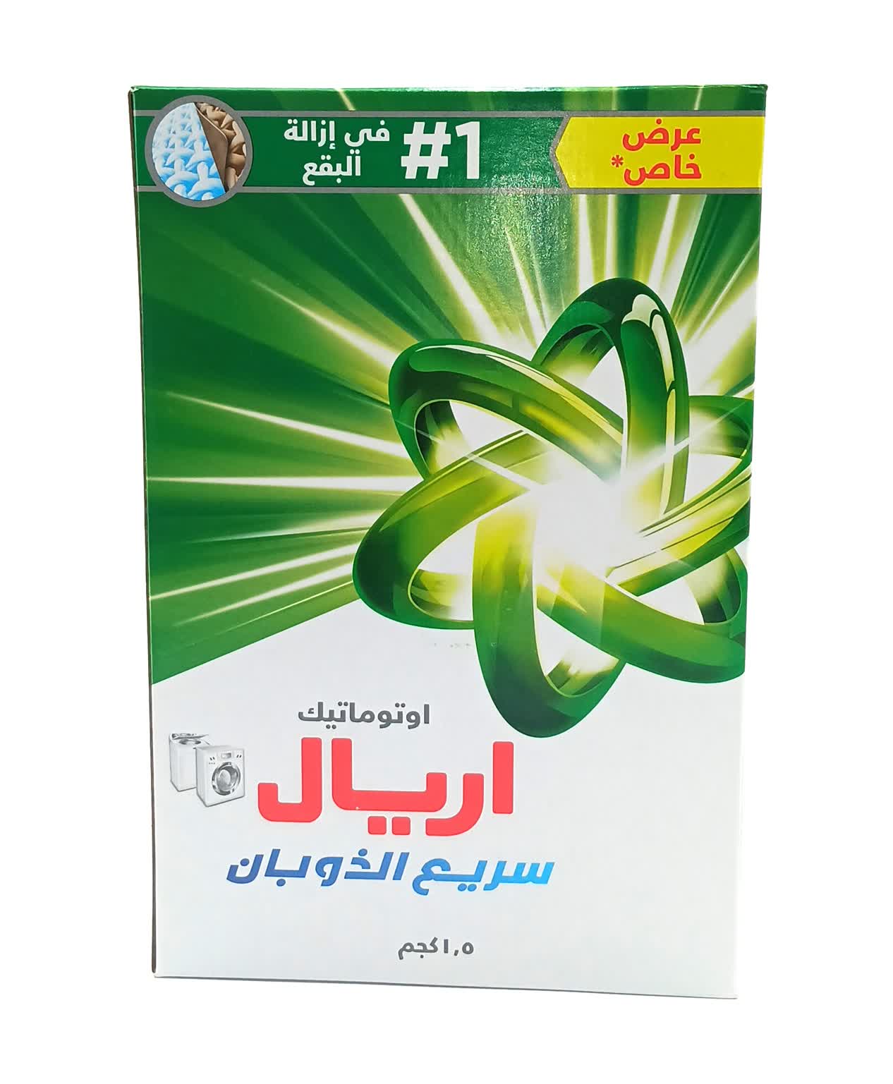 اريال مسحوق غسيل وتنظيف الملابس سريع الذوبان للغسالات الاوتوماتيكية 1.5 كجم