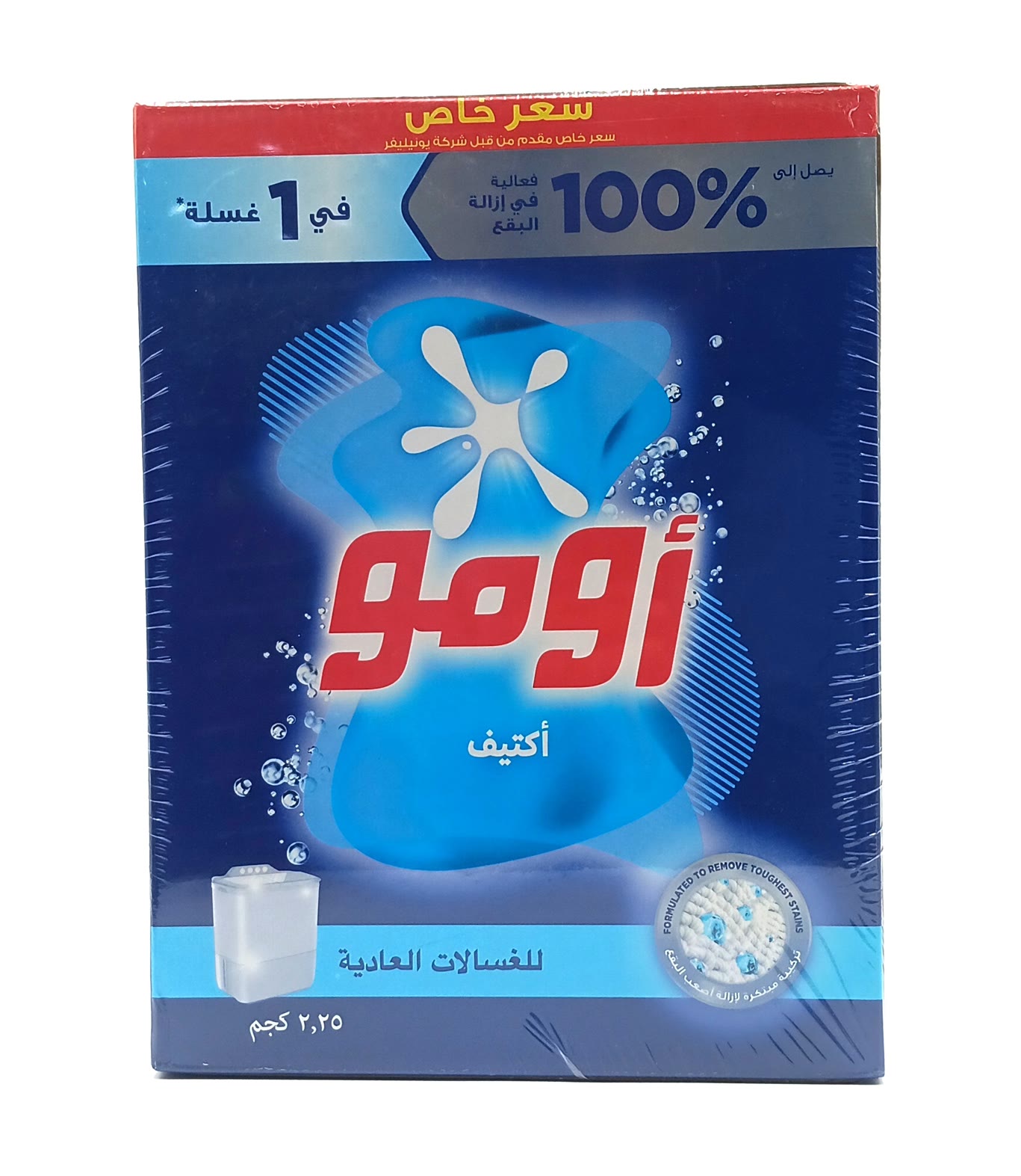 اومو اكتيف مسحوق غسيل وتنظيف الملابس للغسالات العادية 2.25 كجم حبتين