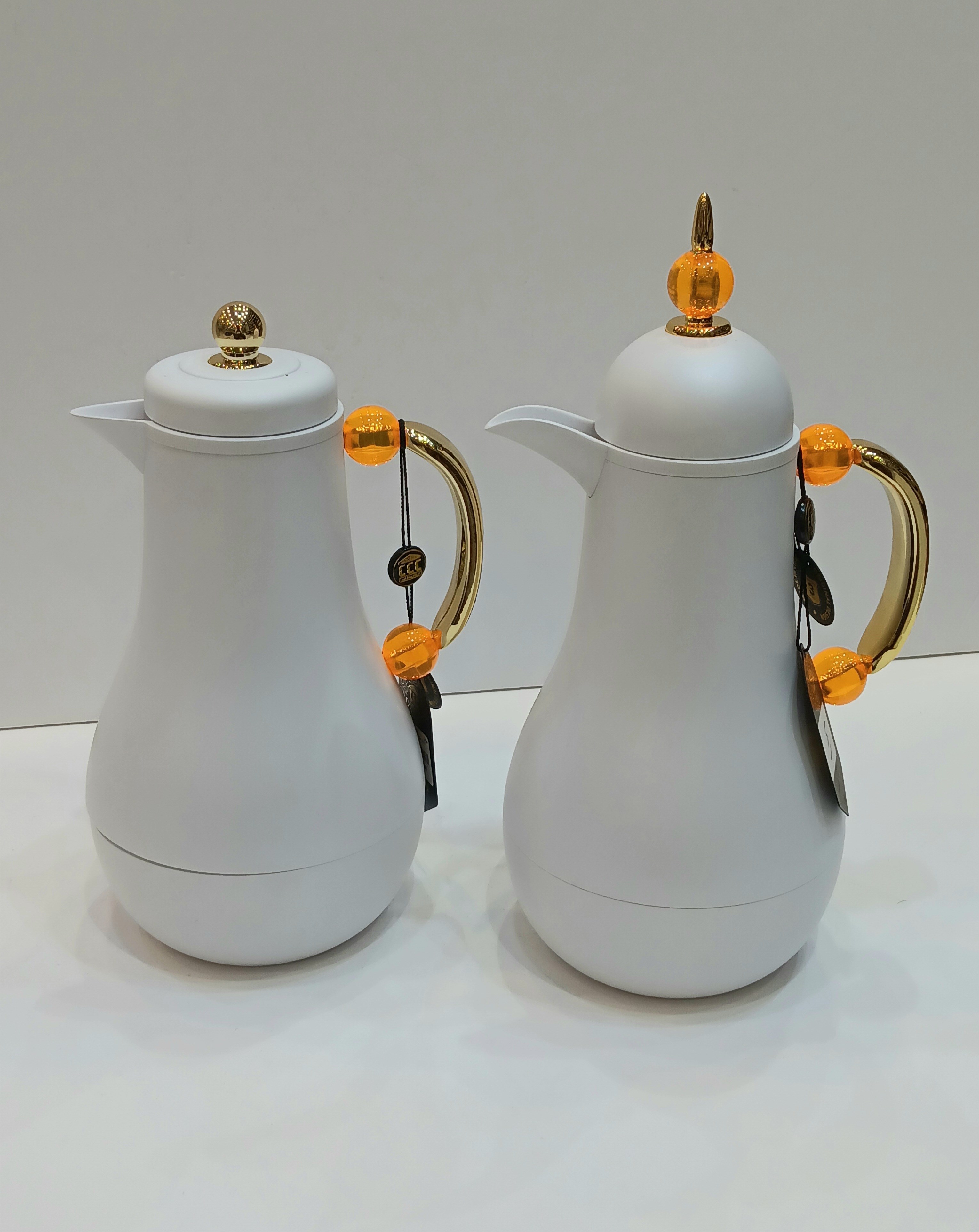 طقم مطارات شاي قطعتين لون ابيض بيد ذهبي