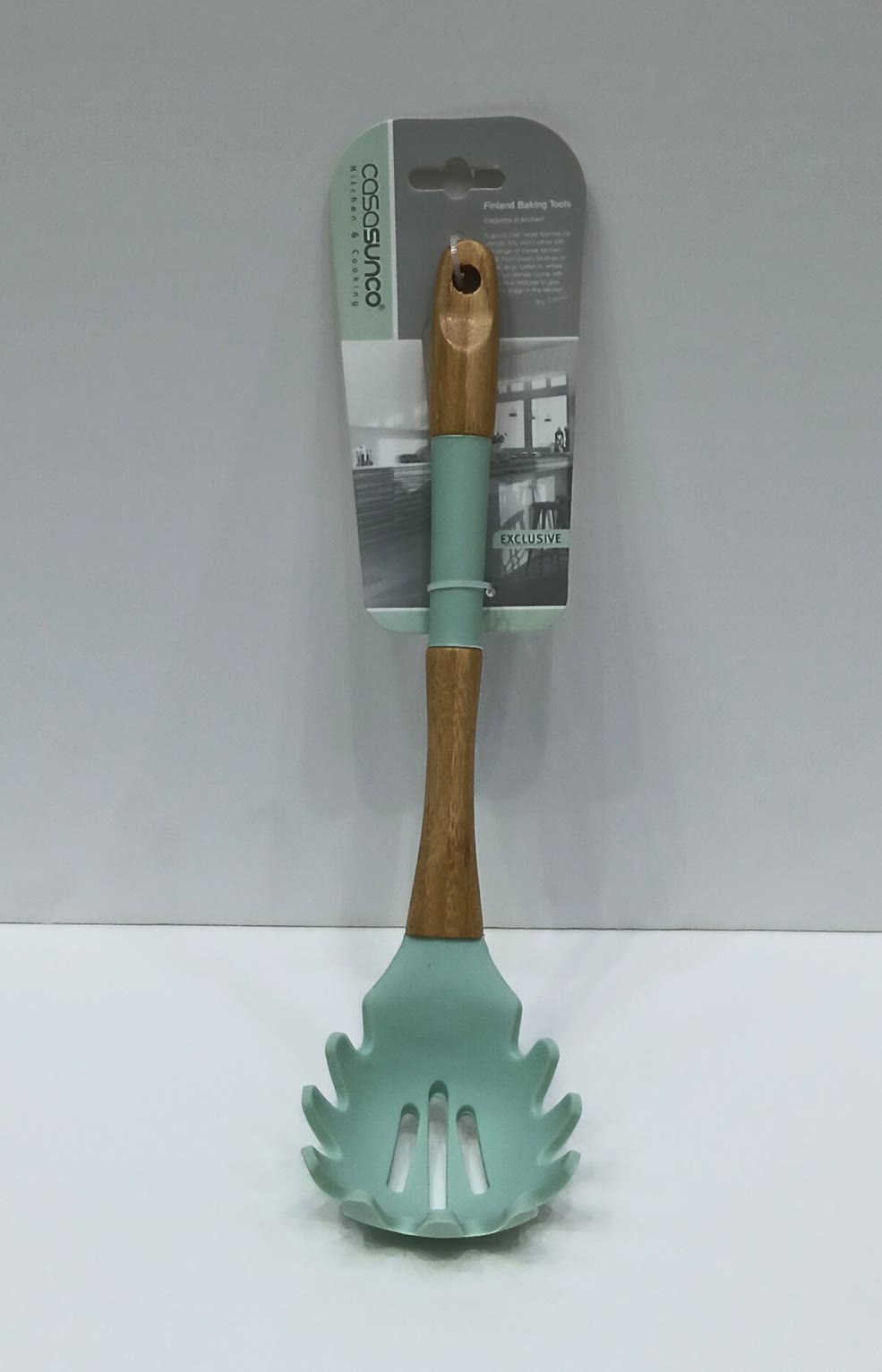 ملعقة اسباجيتي سيليكون بيد خشبي