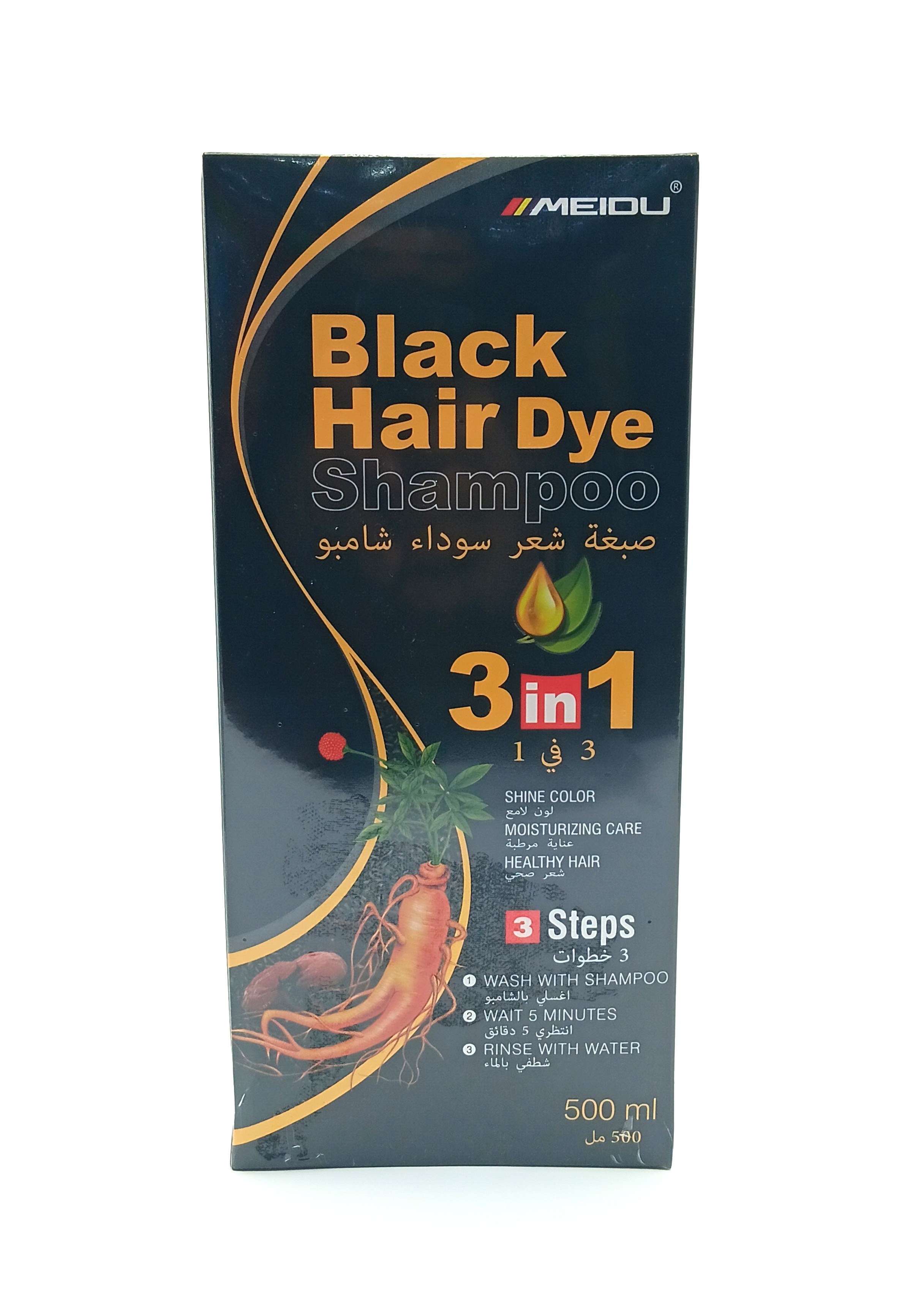 ميدو صبغة شعر سوداء شامبو للون لامع وشعر صحي 500 مل 3×1