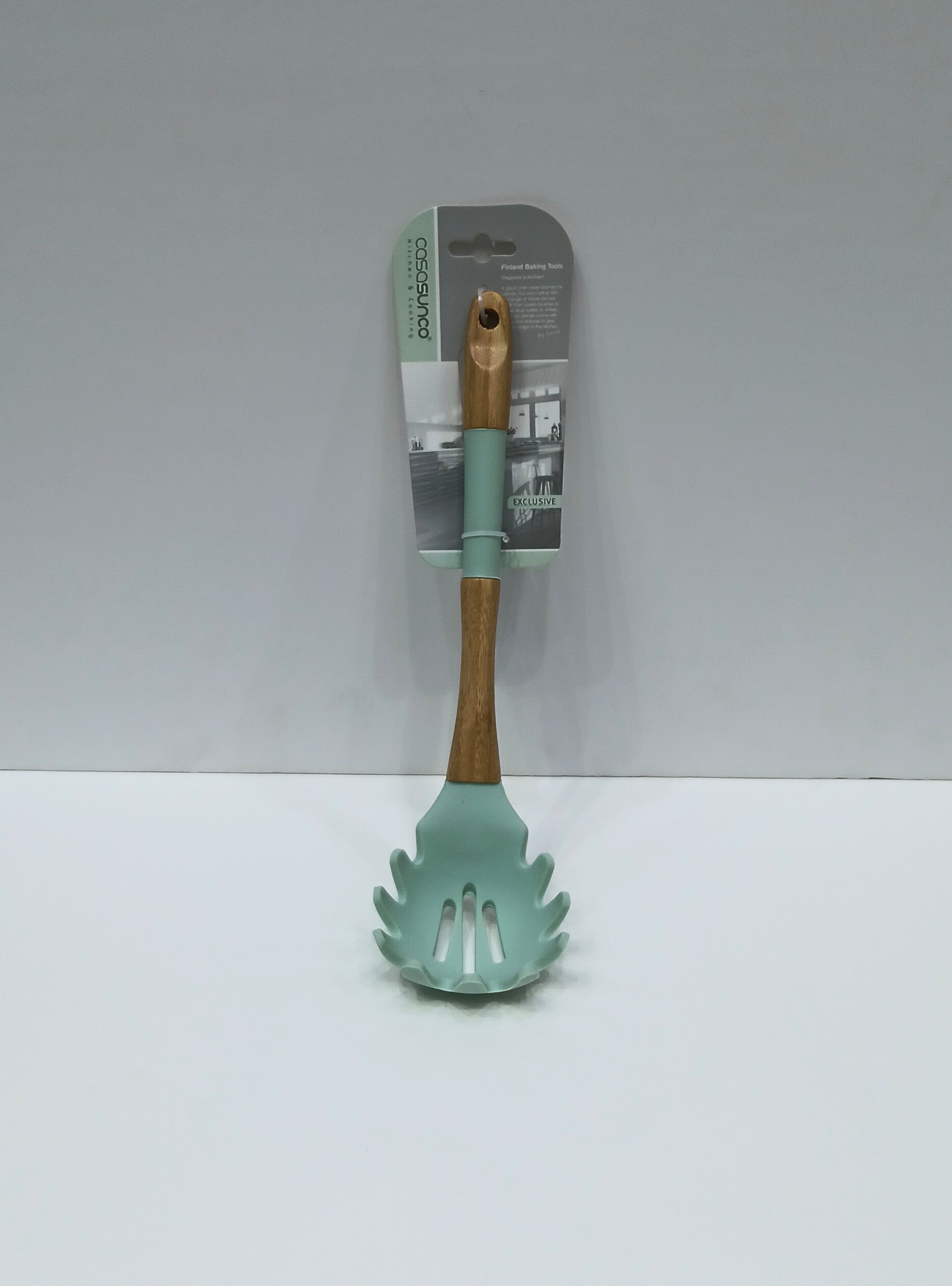 ملعقة اسباجيتي سيليكون بيد خشبي