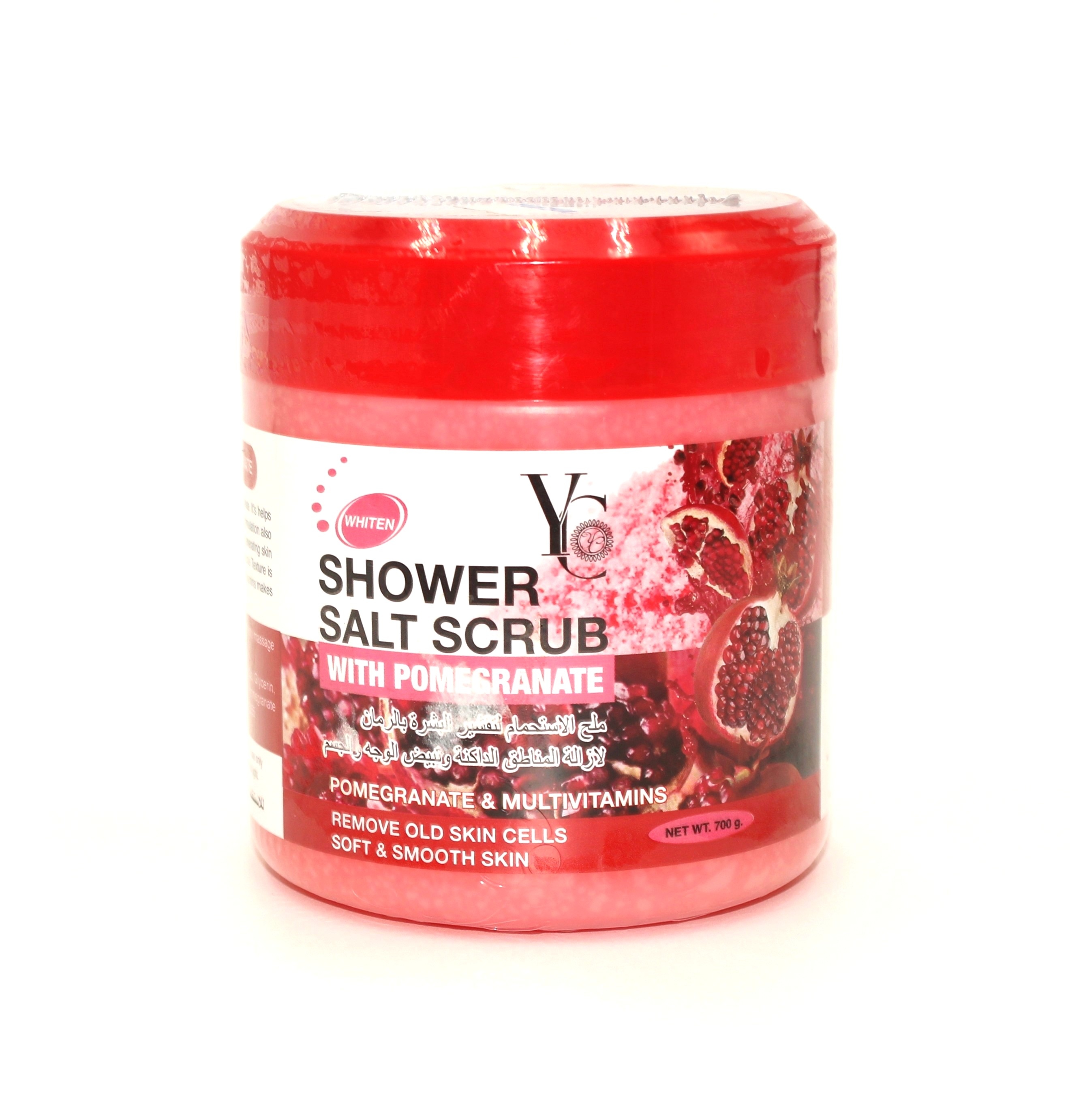 واي سي ملح الاستحمام مقشر ومبيض للوجه والجسم بالرمان وفيتامينات متعددة 700 جرام