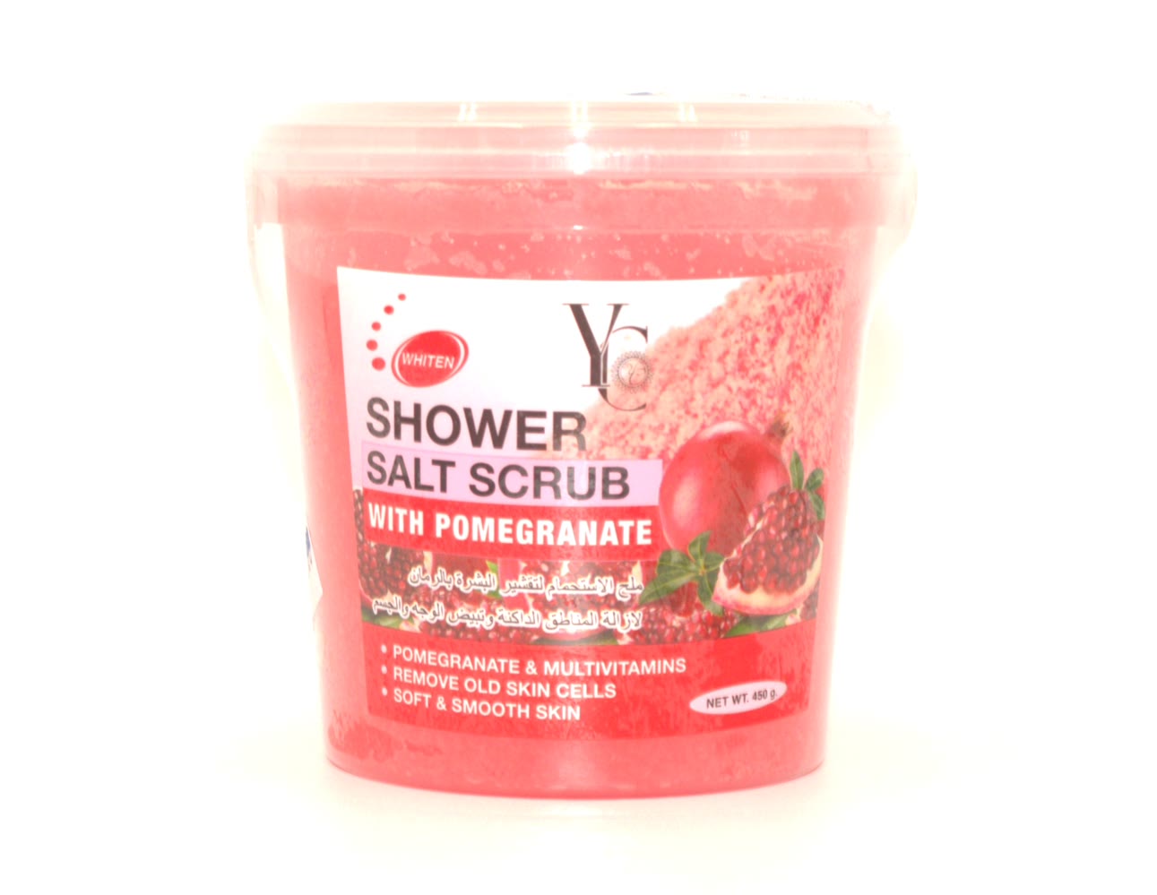 واي سي ملح الاستحمام لتقشير البشرة بالرمان لتبييض الوجه والجسم 450 جرام