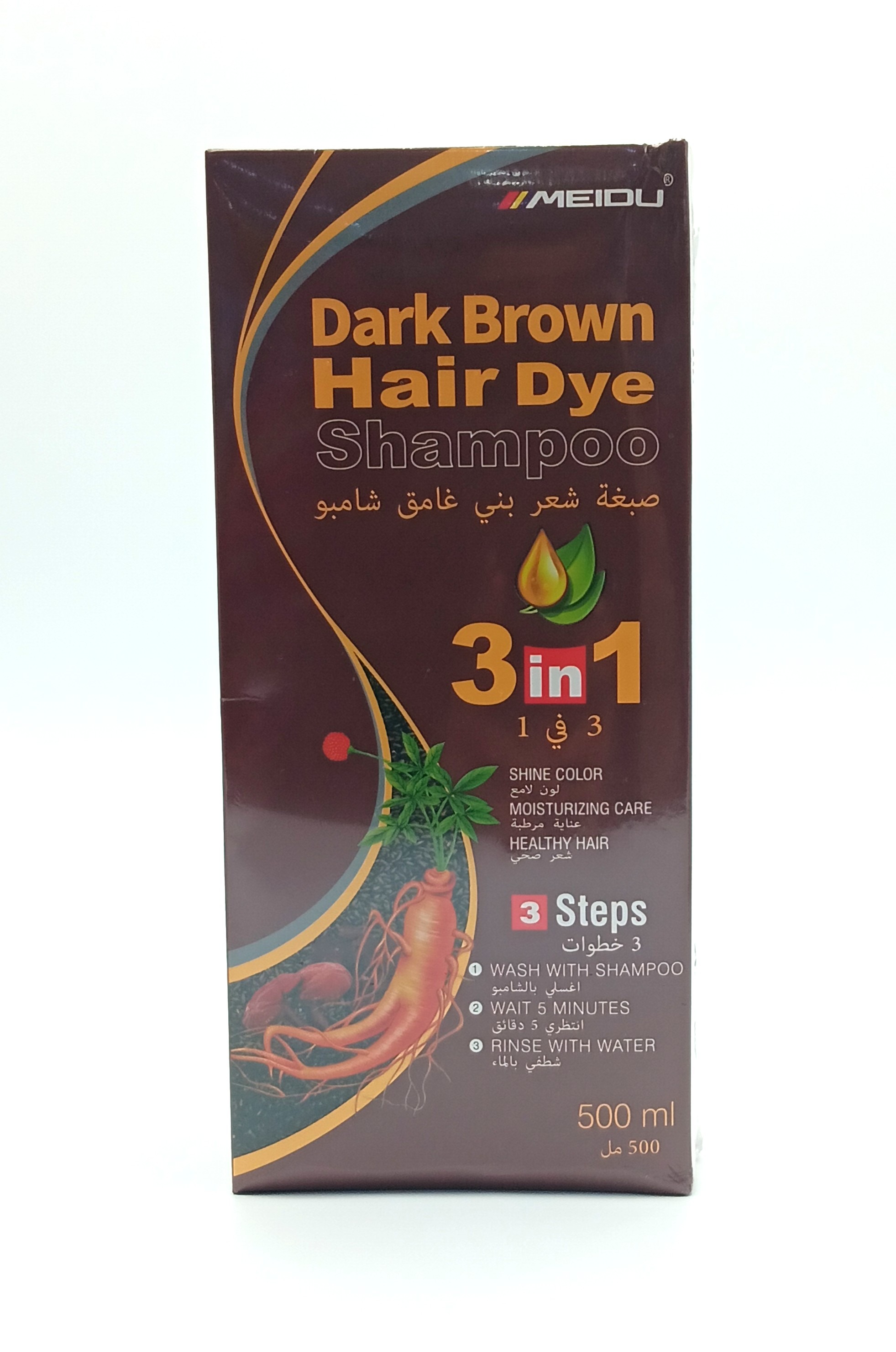 ميدو صبغة شعر بني غامق شامبو للون لامع وشعر صحي 500 مل بالاعشاب الطبيعية 3×1