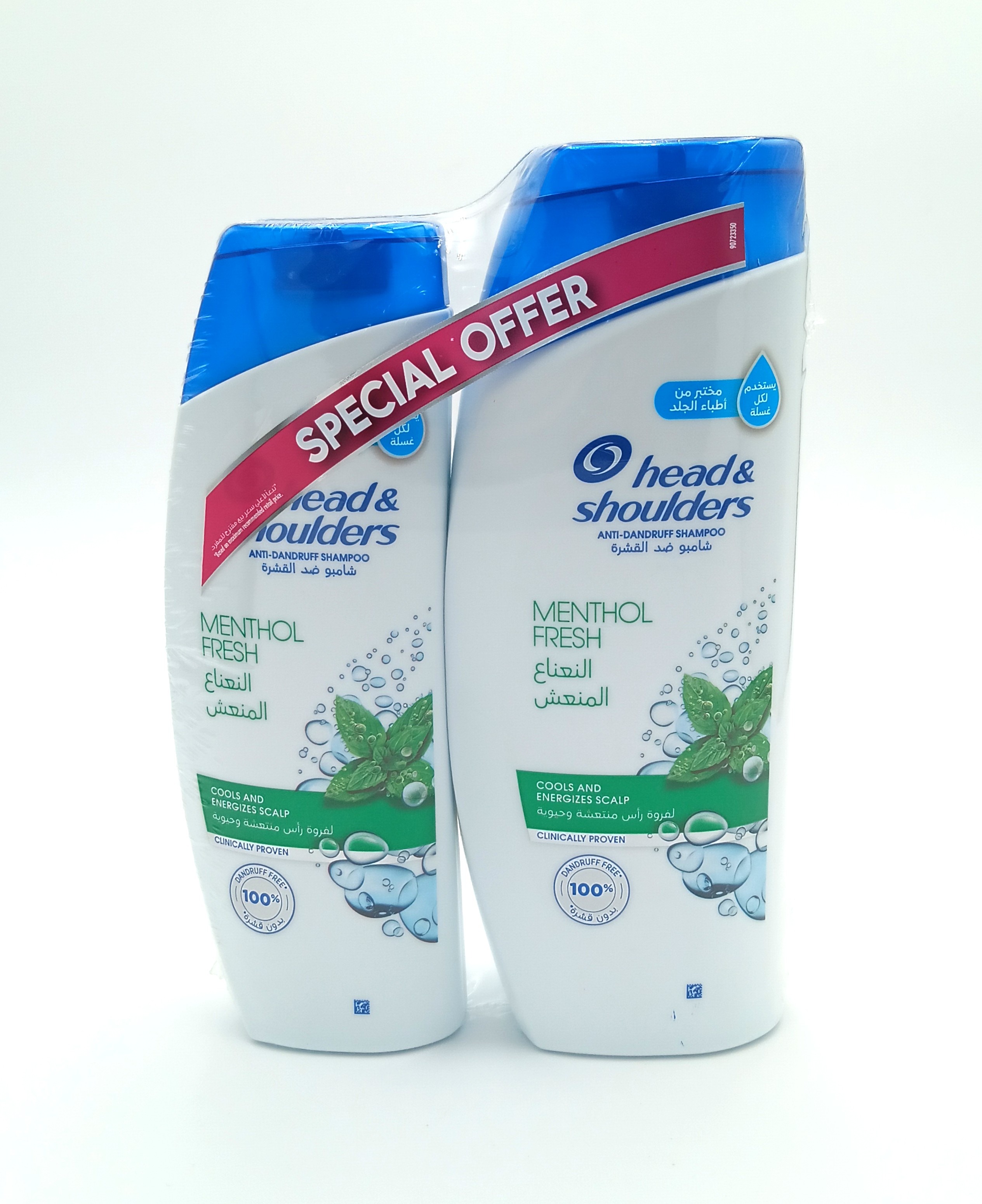 هيد اند شولدرز شامبو للشعر ضد القشرة بالنعناع المنعش لفروة راس منتعشة وحيوية عبوتين 700 مل + 400 مل