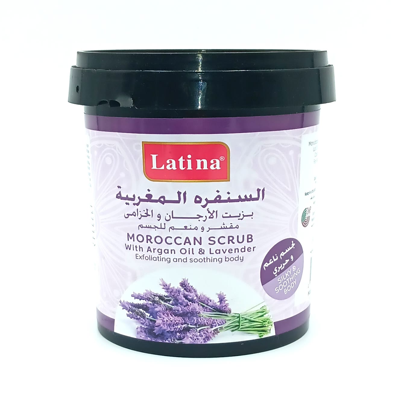 لاتينا السنفرة المغربية مقشر ومنعم للجسم بزيت الارجان واللافندر 600 جرام ( الارغان - الخزامى )