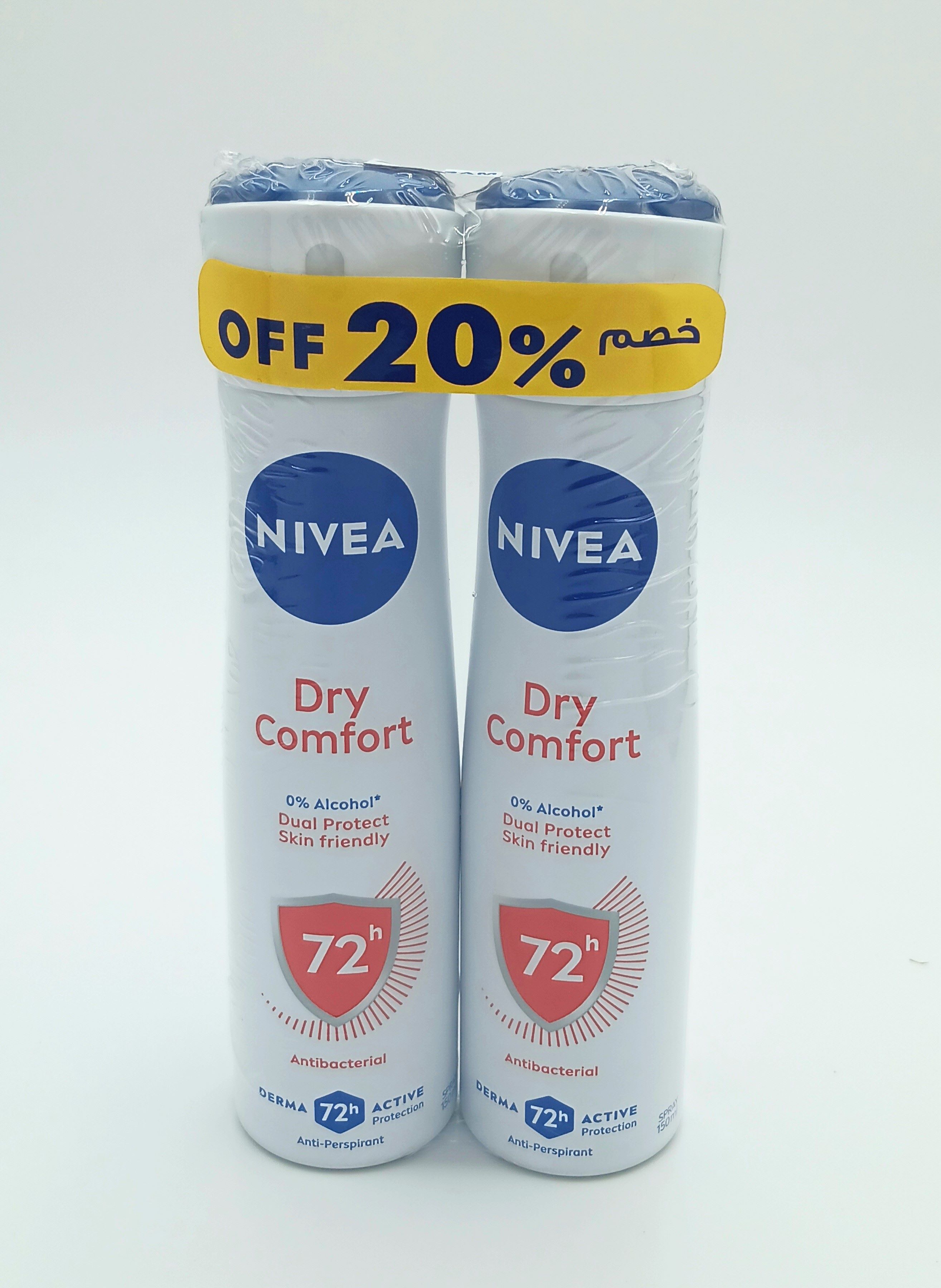 نيفيا مزيل عرق بخاخ راحة جافة لحماية عالية عبوتين 150مل