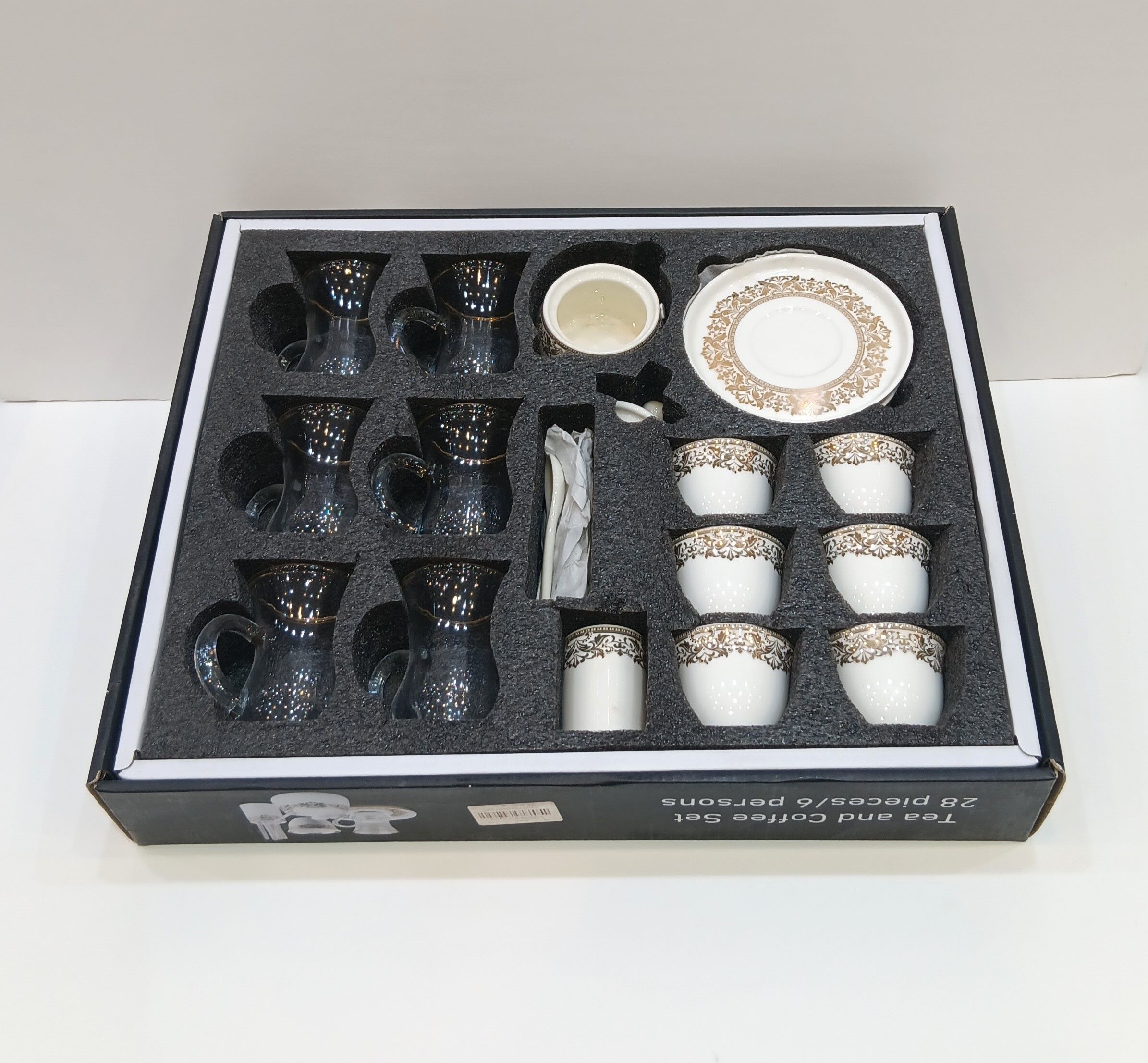 طقم استكانات وفناجين قهوة 28 قطعة مذهب