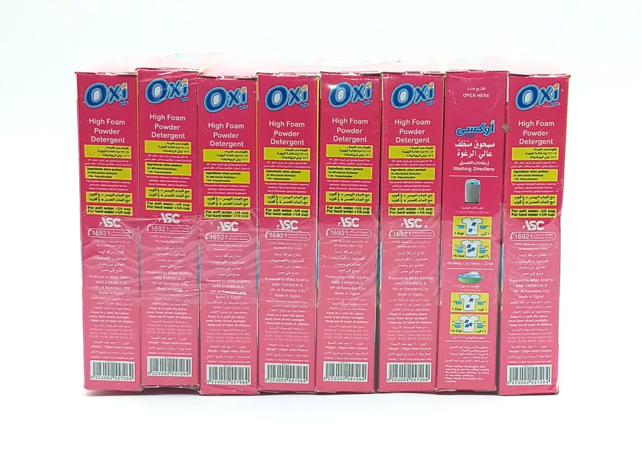 اوكسي مسحوق غسيل وتنظيف الملابس للغسالات العادية بنسيم الربيع للابيض والالوان 120 جرام 8 عبوات