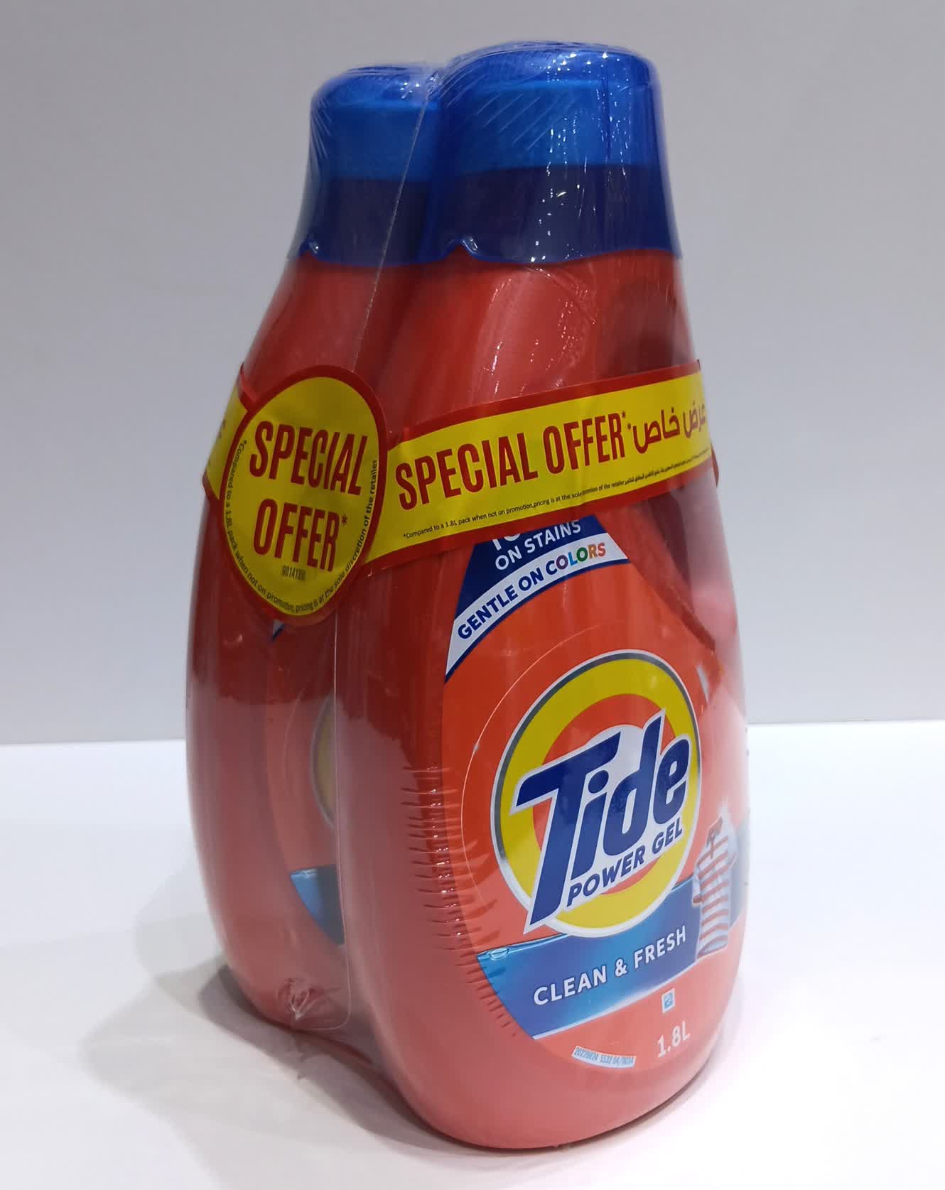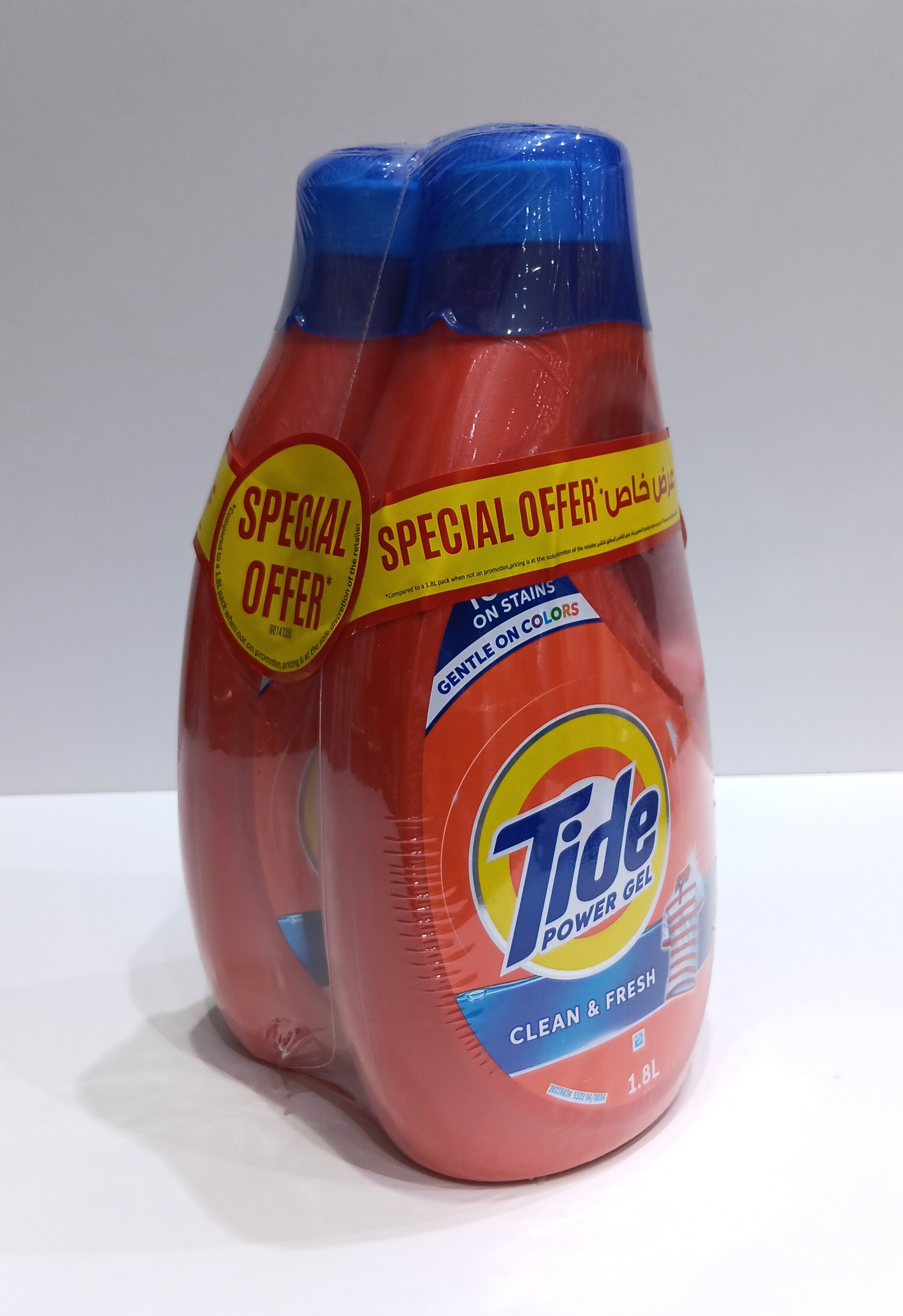 تايد باور جل كلين اند فريش سائل غسيل وتنظيف الملابس والاقمشة للغسالات الاوتوماتيكية 1.8 لتر عرض عبوتين