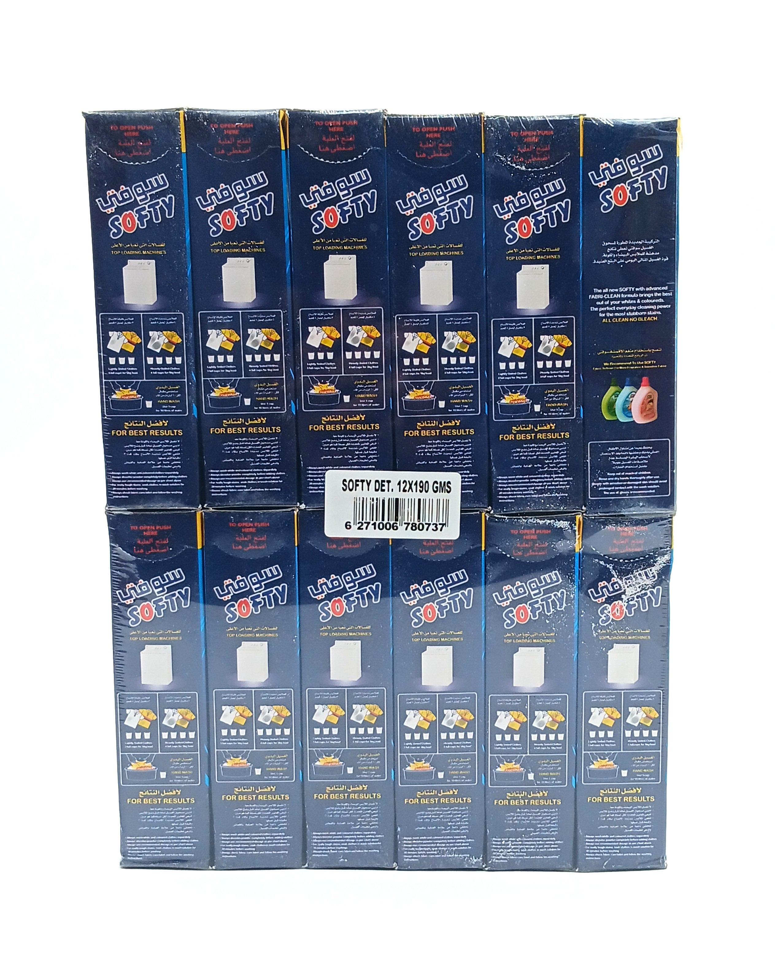 سوفتي مسحوق غسيل وتنظيف الملابس للغسالات التي تعبأ من الاعلى 190 جرام 12 عبوة