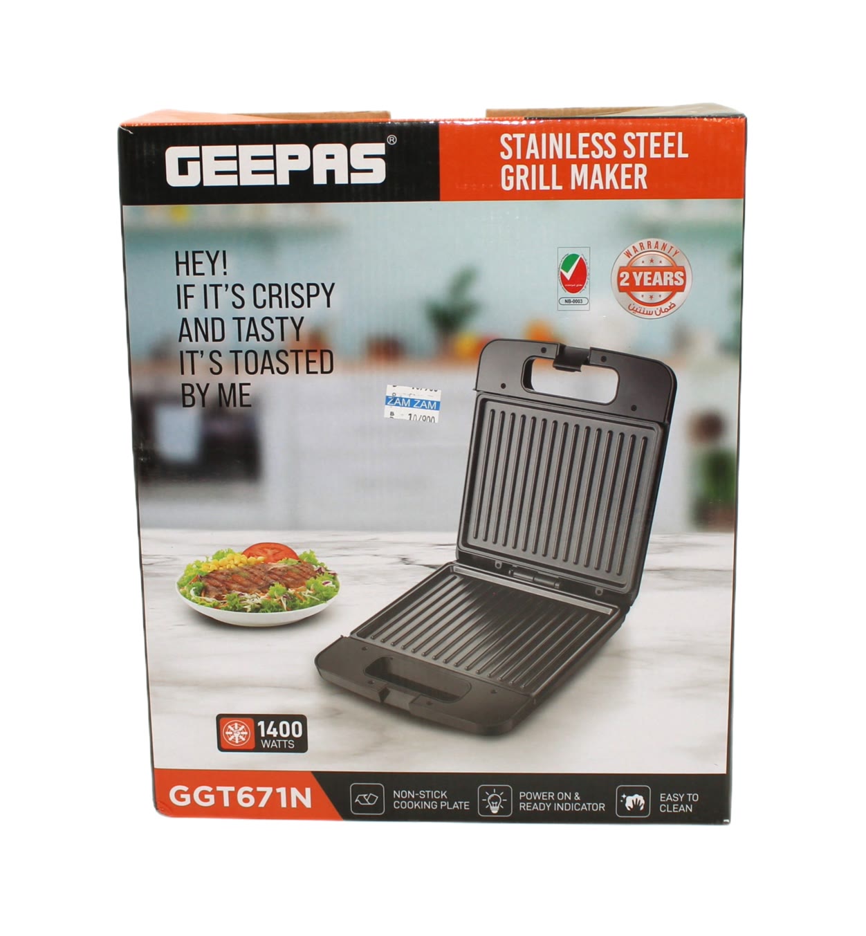 شواية كهربائية صغيرة جيباس 1400 واطGeepas Stainless Steel Grill Maker GGT671N ، يوفر حلاً مثالياً لتحضير الطعام المشوي بكل سهولة في المنزل. يتميز بلوحات شواء غير لاصقة وقدرة 1400 واط لتحقيق نتائج شواء ممتازة، مع مؤشرات ضوء للتشغيل والاستعداد وتحكم في درجة الحرارة، وهو مثالي لتجهيز مجموعة متنوعة من الأطعمة من اللحوم إلى الخضروات بكفاءة وسرعة.