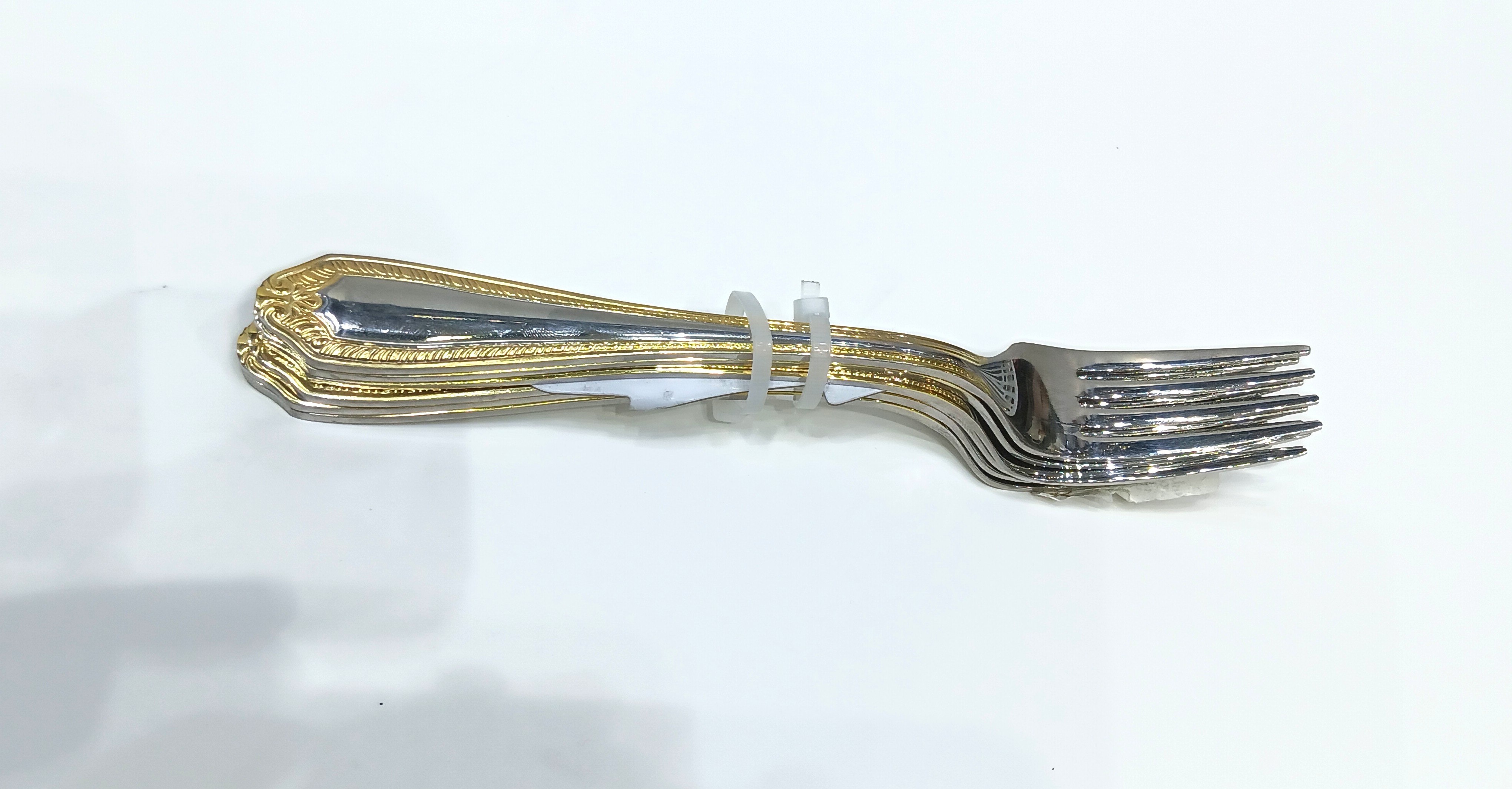شوكة معدن فضي بطوق ذهبي 6 قطع