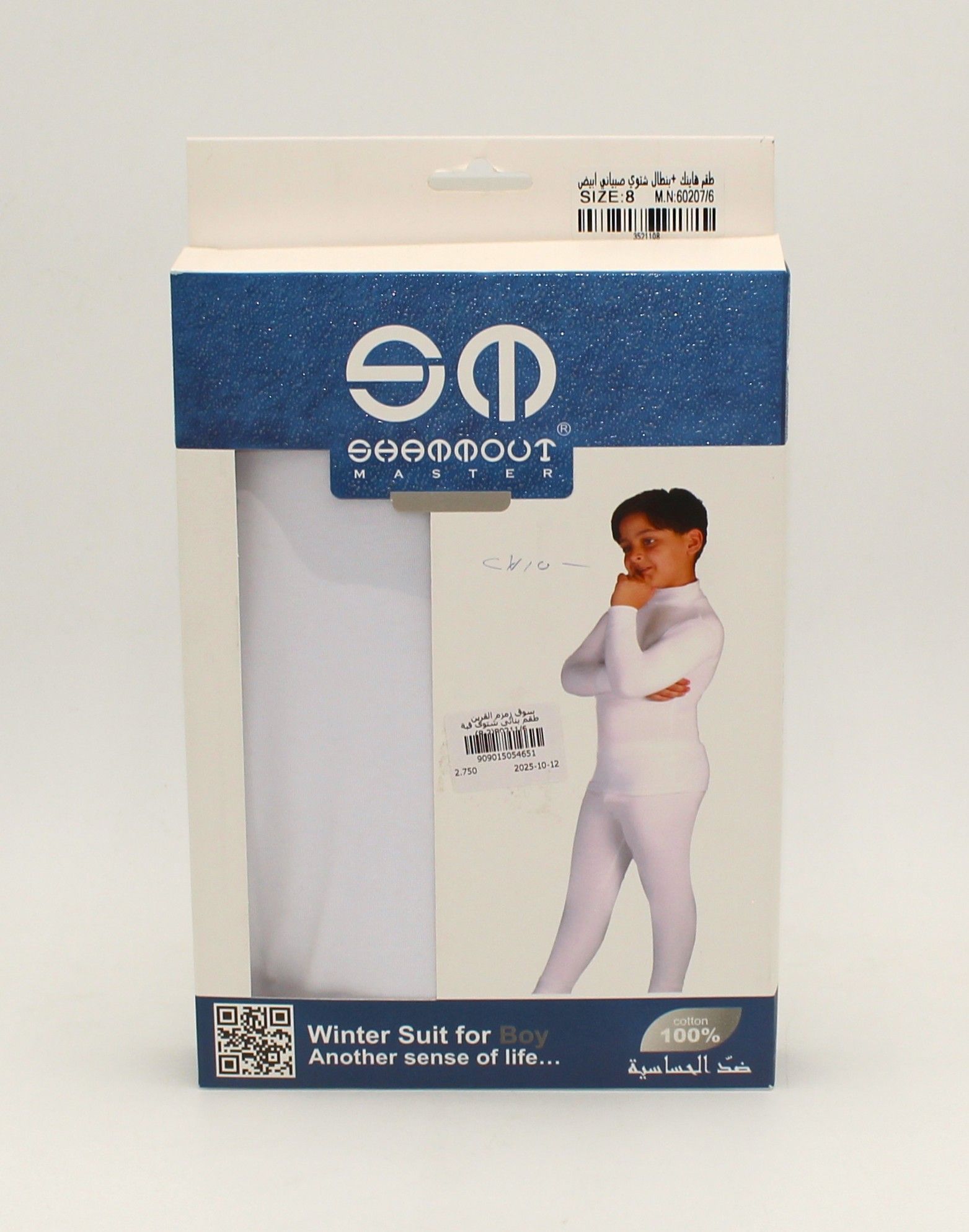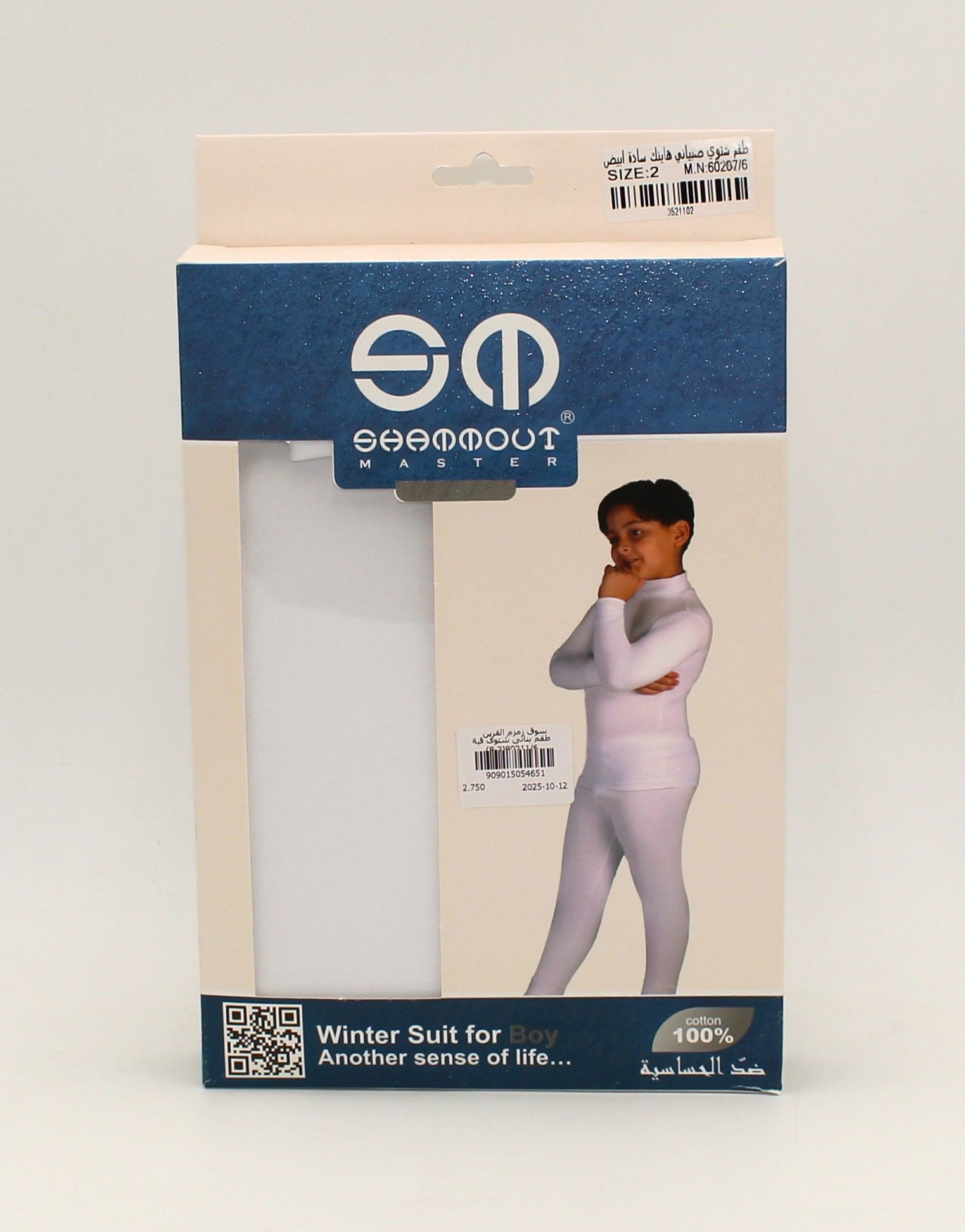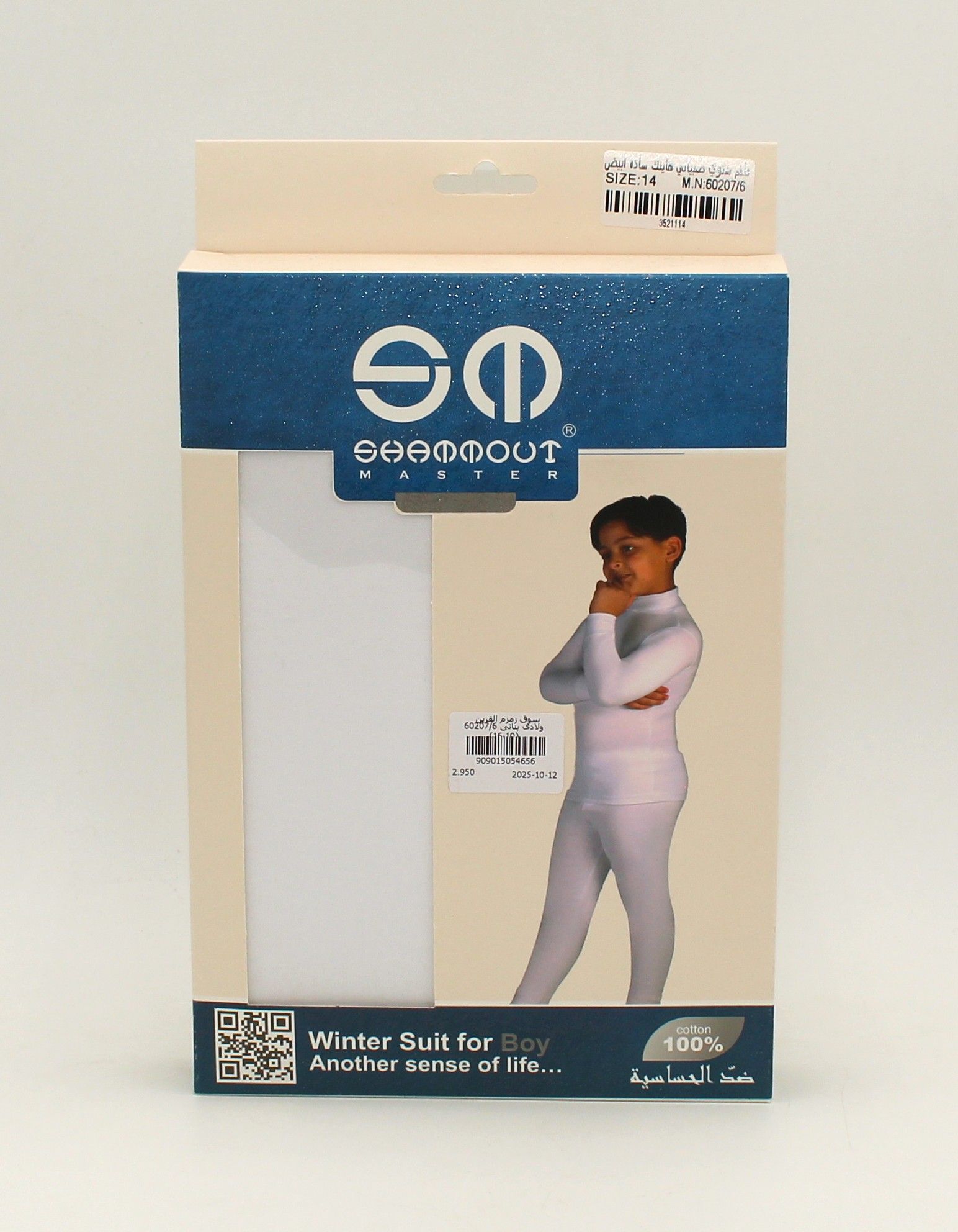 طقم شتوي ولادي ابيض سادة رقبة عالية قطعتين high nick ( بجامة )