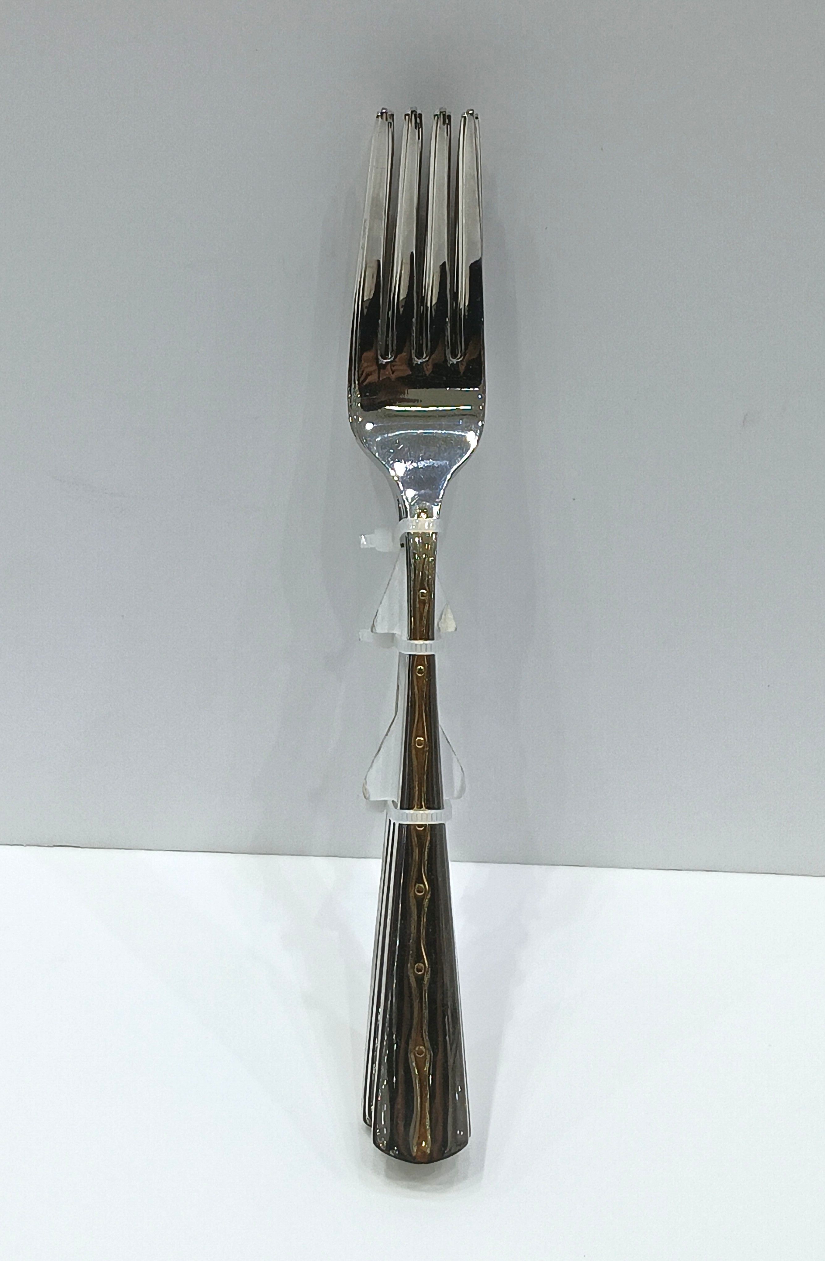 طقم شوك معدني فضي بنقش ذهبي 6 قطع