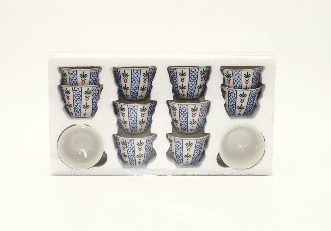طقم فنجان قهوة عربي سيراميك مزخرف 12 قطعة