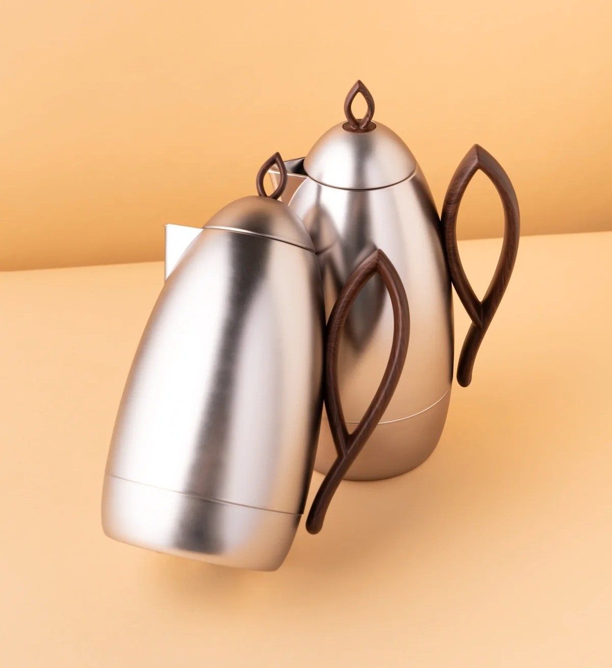 طقم مكون من مطارتين السعة: 1 / 0.7 لتر -الجدار الخارجي: بلاستيك مقوى الداخل: زجاج - الغطاء: كبس - يحفظ الحرارة لمدة 8 ساعات