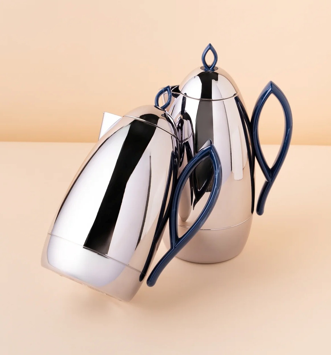 طقم مطارات افنان من وابا قطعتين 1 لتر فضي لامع بيد ازرق رخامي