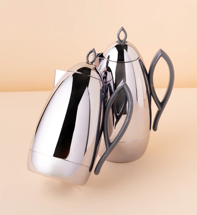 طقم مطارات افنان من وابا قطعتين 1 لتر فضي لامع بيد رخامي رمادي