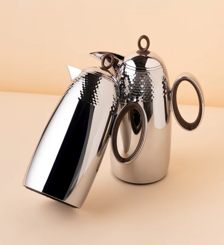 طقم مطارات الخير من وابا قطعتين 1 لتر فضي لامع بيد خشبي