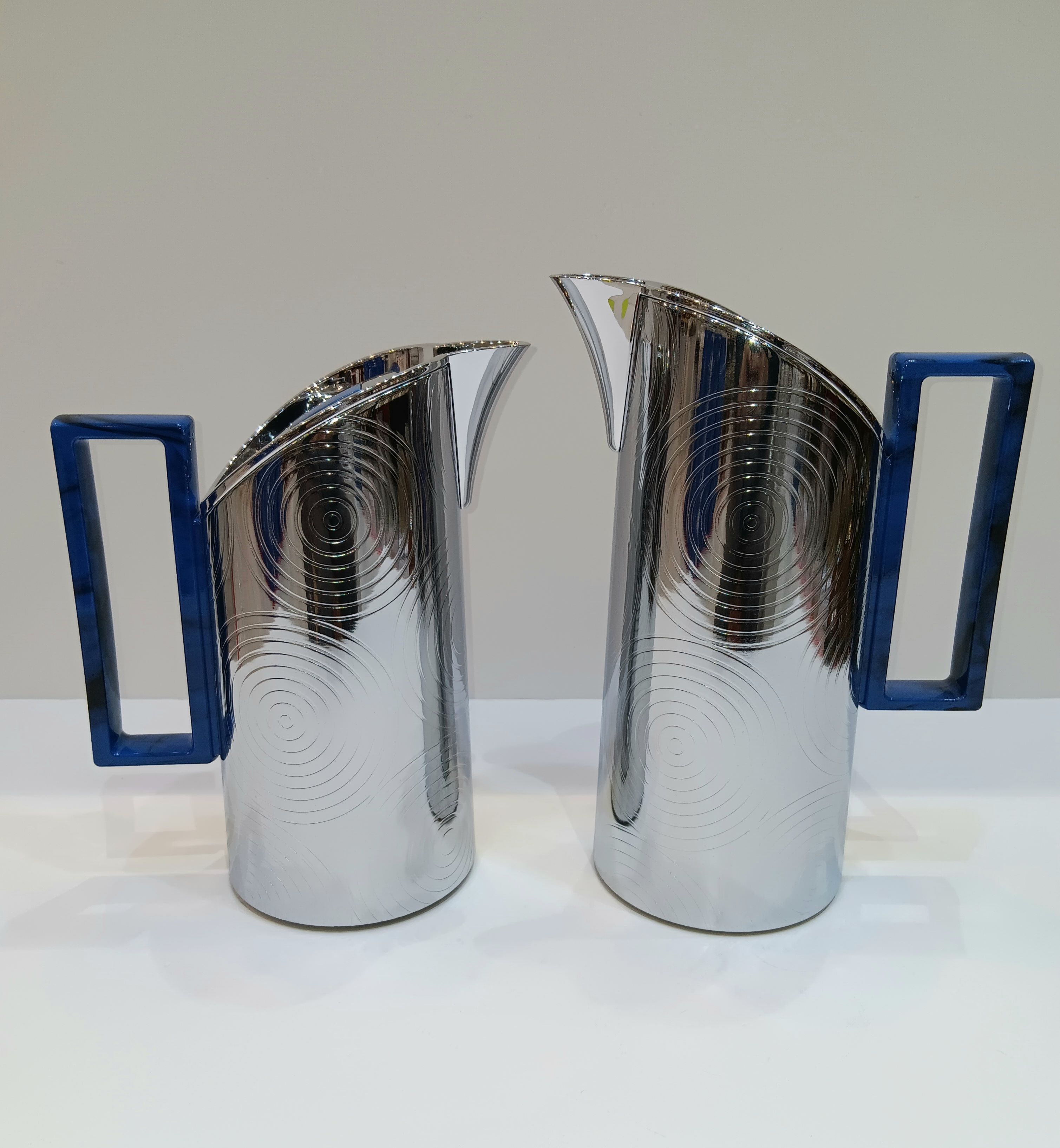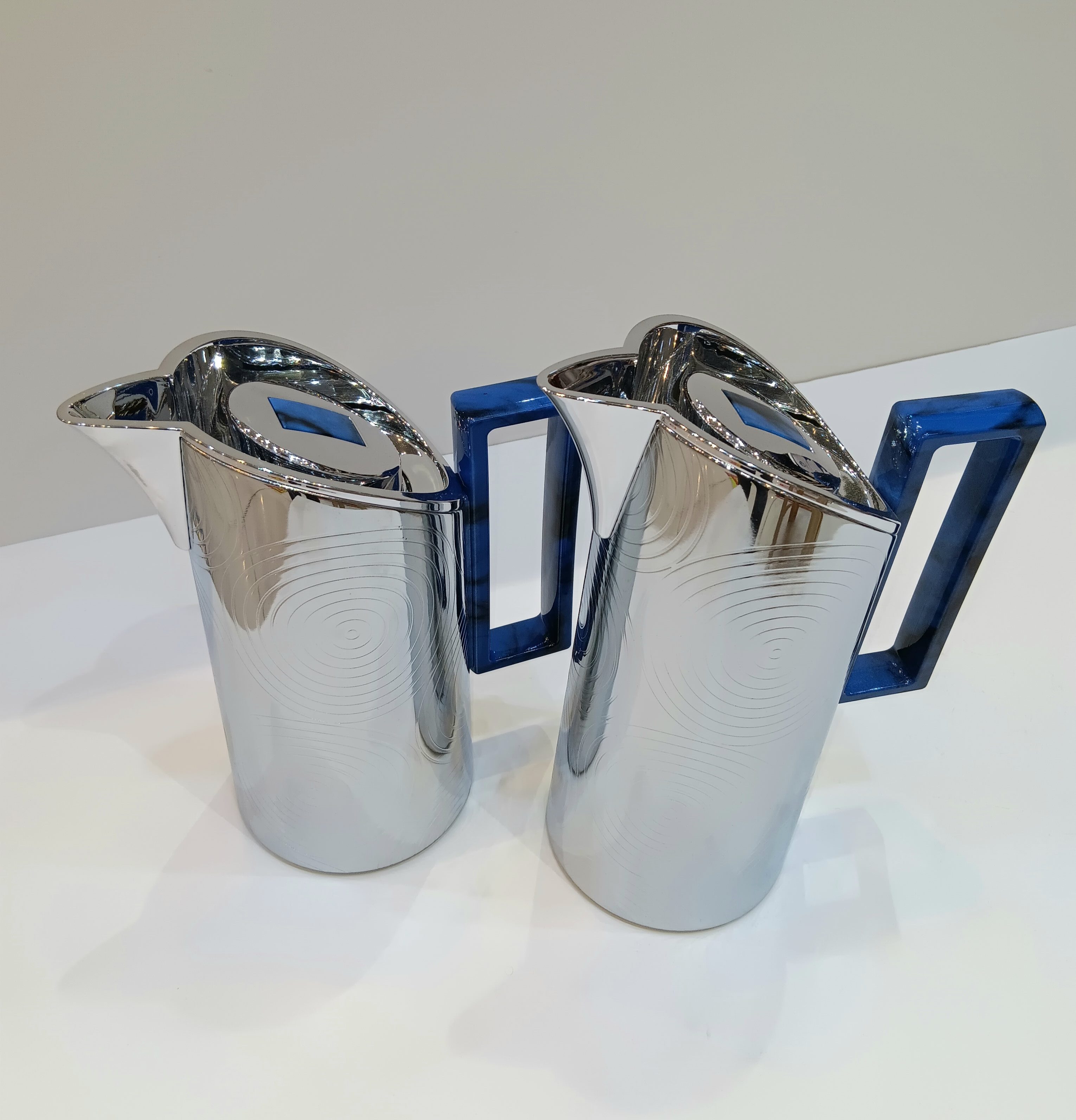 طقم مطارات العز من وابا فضي لامع بيد زرقاء