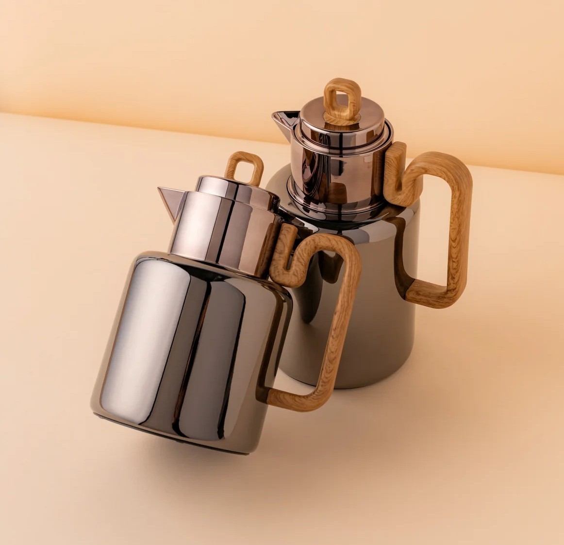 طقم مكون من مطارتين السعة: 1 / 0.5 لتر -الجدار الخارجي: ستيل مقوى الداخل: زجاج - الغطاء: كبس - يحفظ الحرارة لمدة 8 ساعات