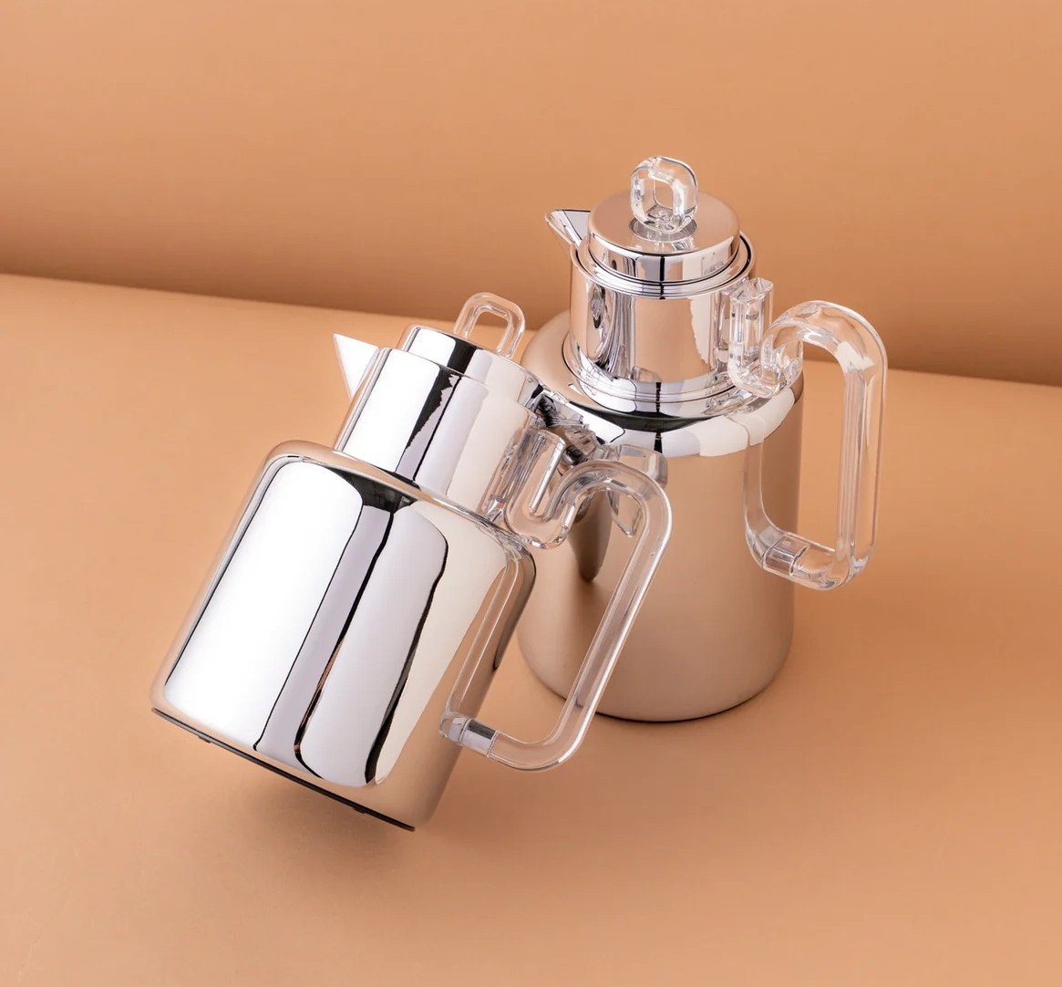 طقم مكون من مطارتين السعة: 1 / 0.5 لتر -الجدار الخارجي: ستيل مقوى الداخل: زجاج - الغطاء: كبس - يحفظ الحرارة لمدة 8 ساعات