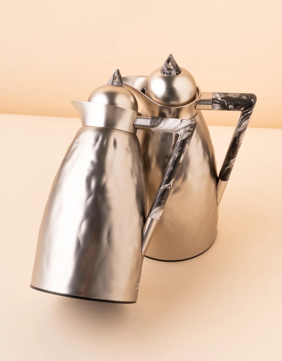 طقم مطارات علياء من وابا قطعتين 1 لتر فضي مطفي بيد جرانيت