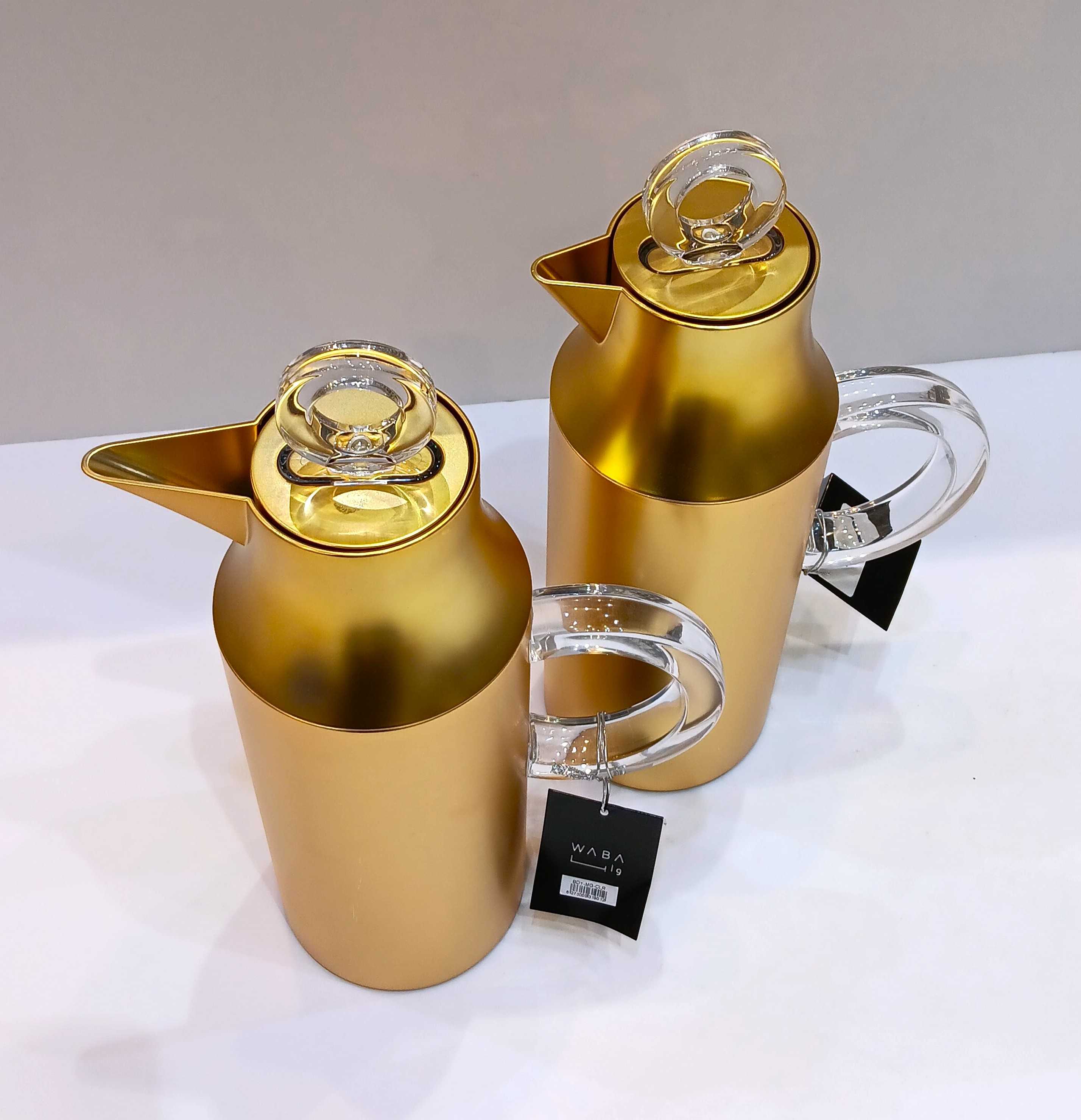 طقم مطارات قطعتين من وابا 1 لتر ذهبي بيد شفاف