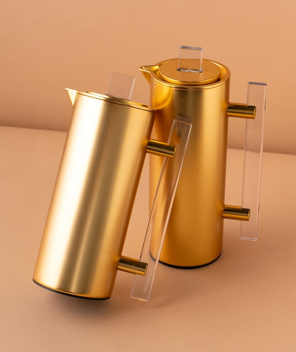 مطارات عالية الجودة طقم مكون من مطارتين السعة: 1 / 0.7 لتر غطاء كبس تحافظ على الحرارة لمدة 8 ساعات الخارج من ستيل  والداخل من الزجاج