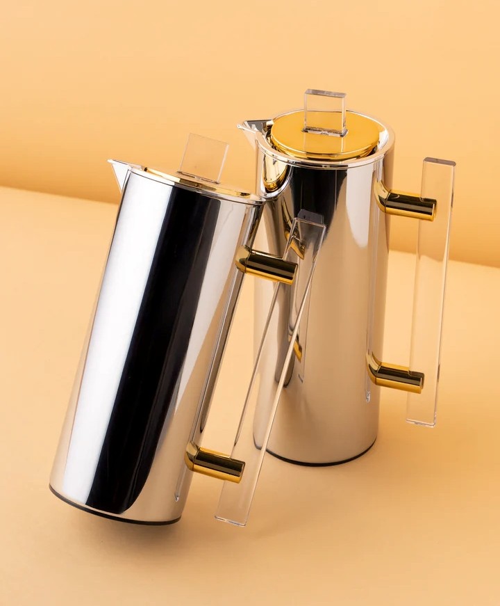 طقم مطارات منار قطعتين من وابا فضي ذهبي يد شفاف