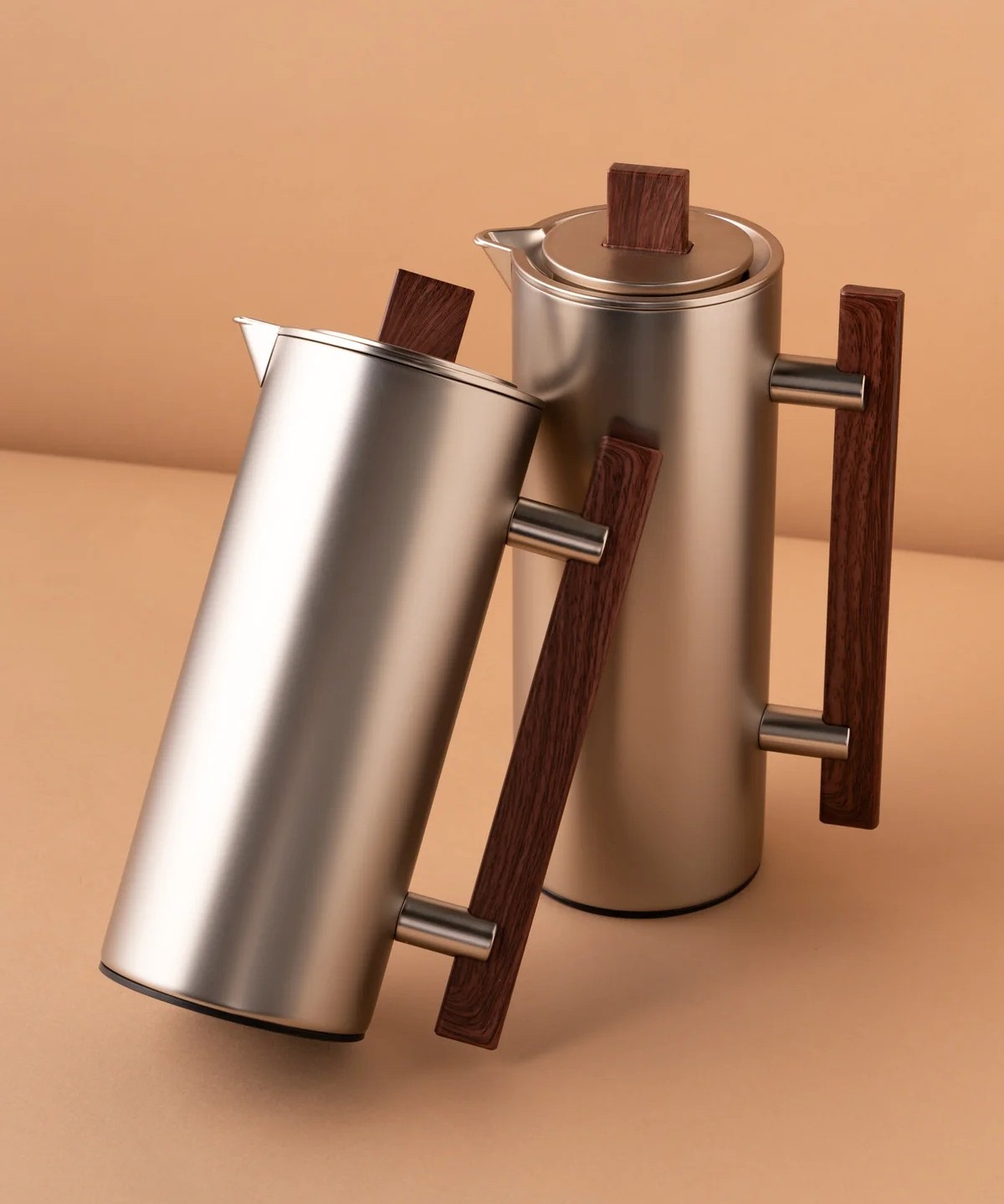 مطارات عالية الجودة طقم مكون من مطارتين السعة: 1 / 0.7 لتر غطاء كبس تحافظ على الحرارة لمدة 8 ساعات الخارج من ستيل والداخل من الزجاج
