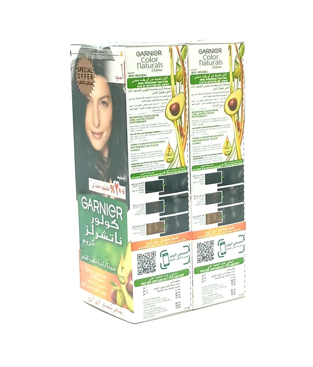 غارنييه كولور ناتشرلز كريم صبغة دائمة مغذية للشعر 3 زيوت لون اسود 1 قطعتين