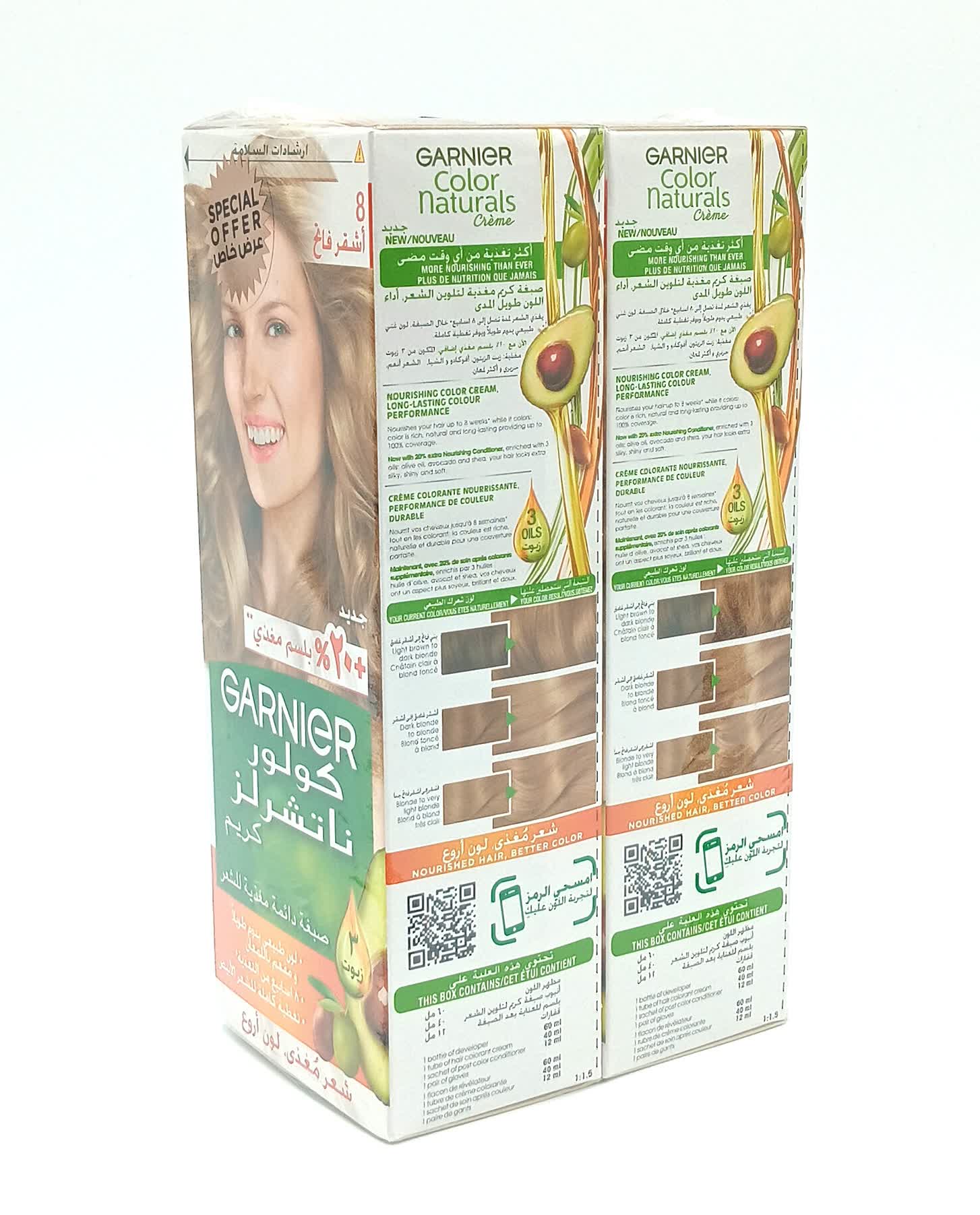 غارنييه كولور ناتشرلز كريم صبغة دائمة مغذية للشعر 3 زيوت لون اشقر فاتح 8 قطعتين