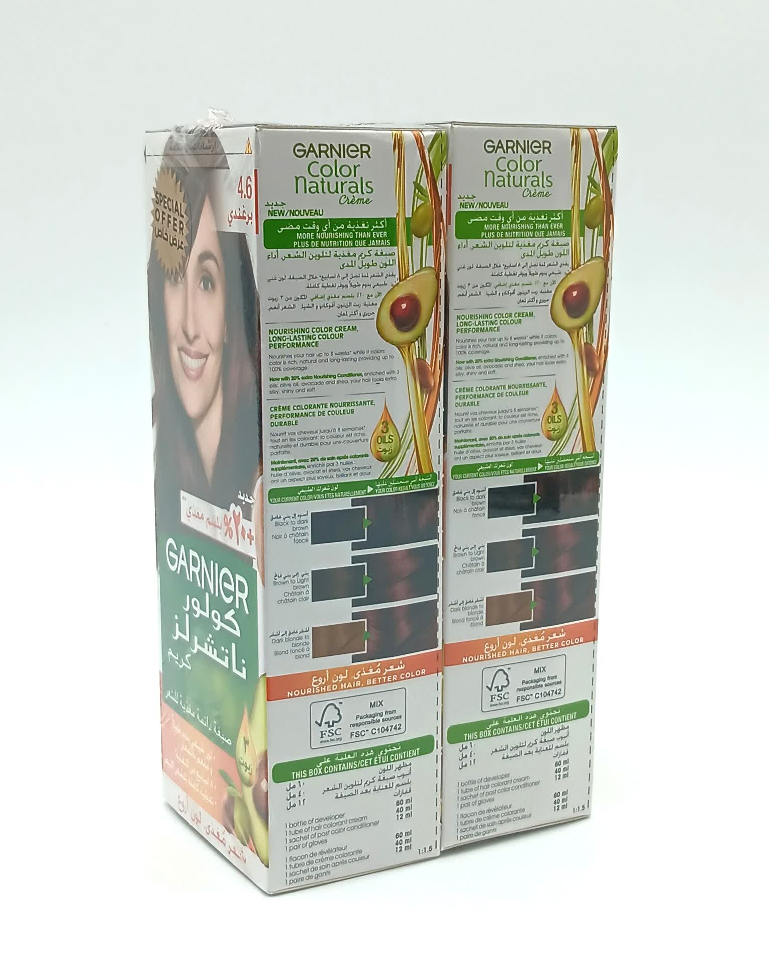 غارنييه كولور ناتشرلز كريم صبغة دائمة مغذية للشعر 3 زيوت لون برغندي 4.6 قطعتين