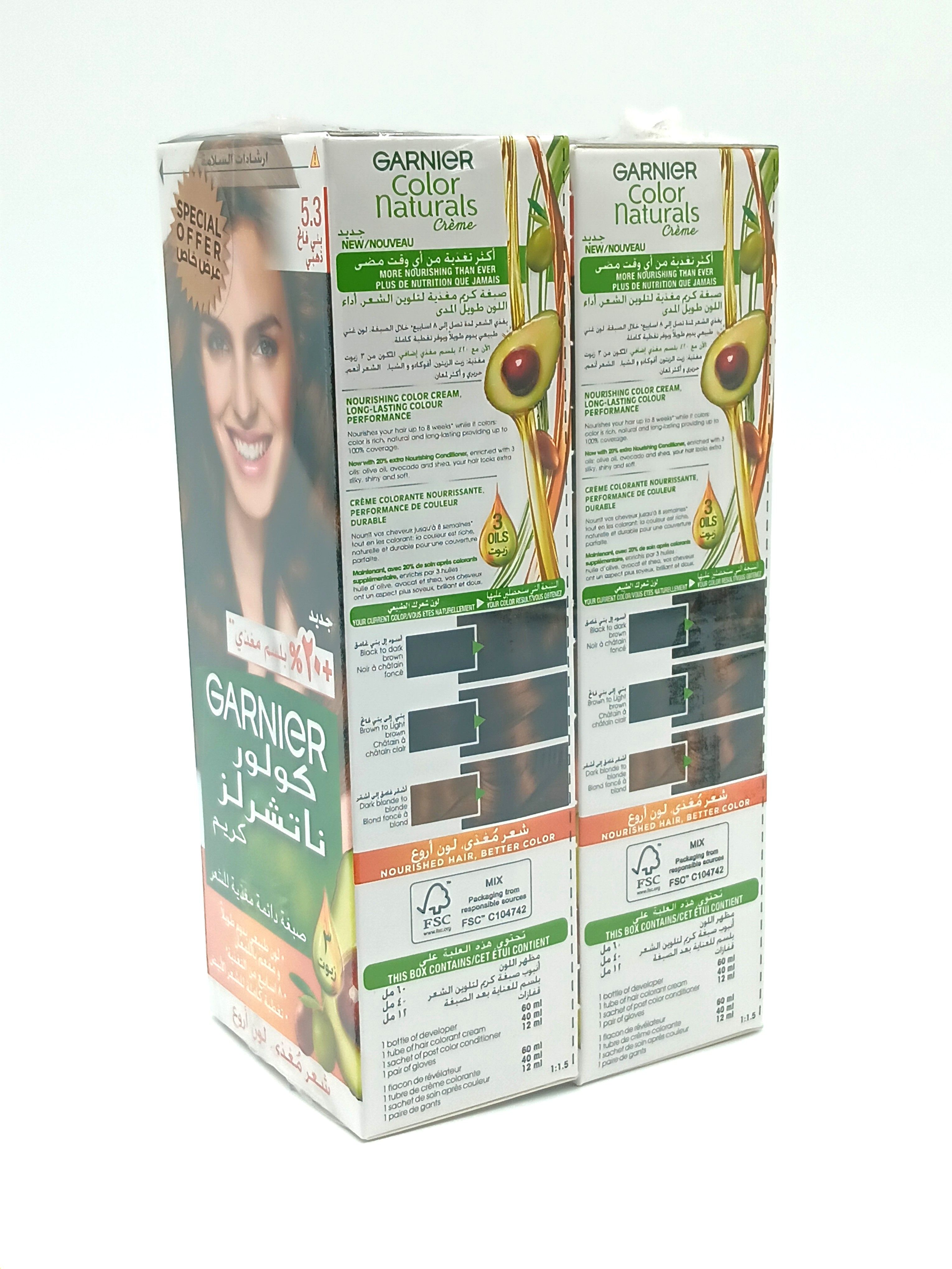 غارنييه كولور ناتشرلز كريم صبغة دائمة مغذية للشعر 3 زيوت لون بني فاتح ذهبي 5.3 قطعتين