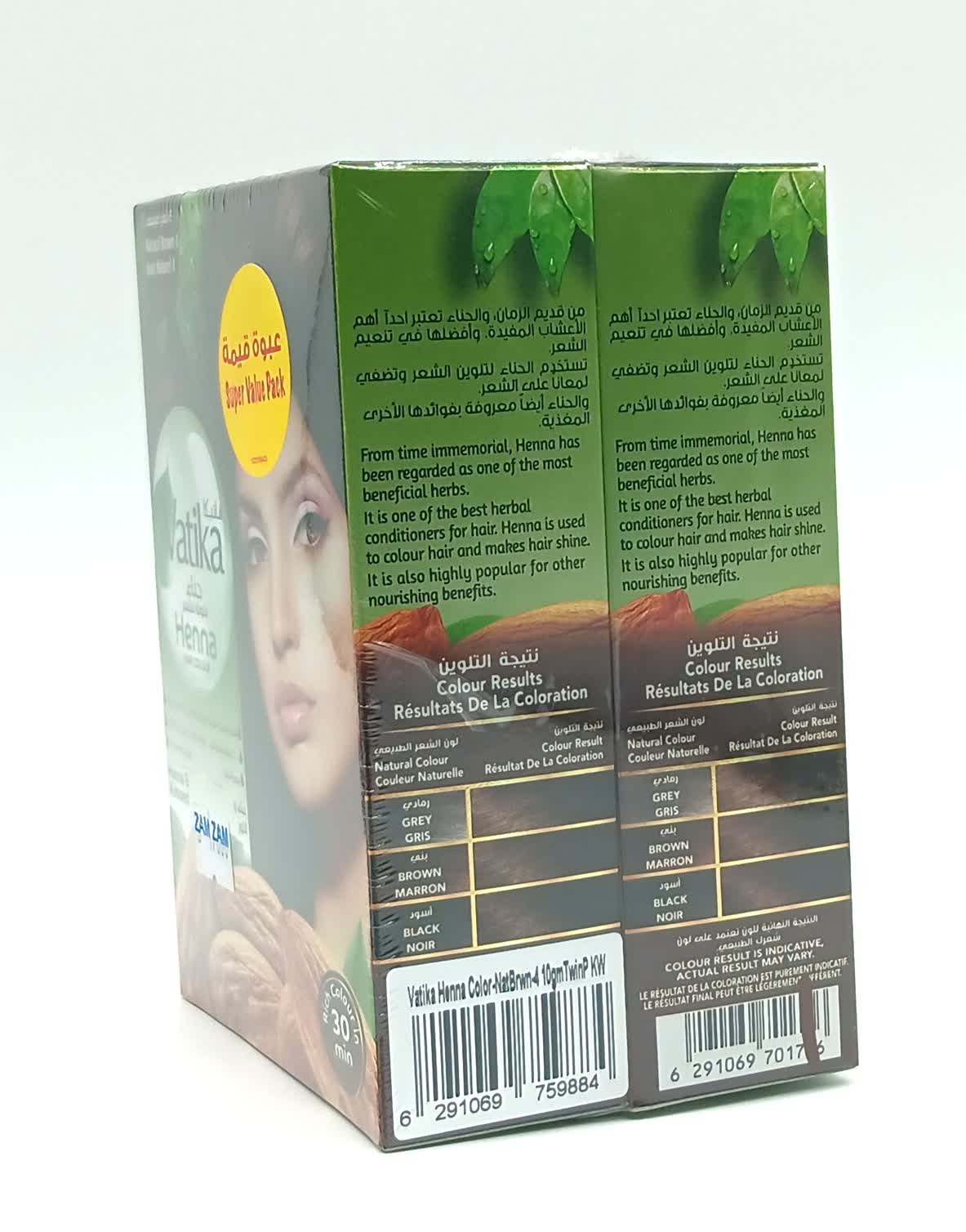 حناء فاتيكا الملونة للشعر خالية من الأمونيا آمنة وسهلة الاستخدام أصبحت مكون موضة نهائياً مزيج فريد من المكونات المُنعشة التي تُضاف إلى الحناء والتي تغذي شعرك وتجعله ناعماً وحريرياً ولامعاً احصل الآن على مجموعة من الألوان الجذابة والتغذية التي لطالما كنت تثق بها، لذا عندما تفكر الآن في صبغ الشعر، تطلع إلى تجربة آمنة ومريحة مع حناء فاتيكا الملونة للشعر تغذي الشعر وتمنحه لمعانًا ونعومة تصبغ 100% من الشعر الاشيب