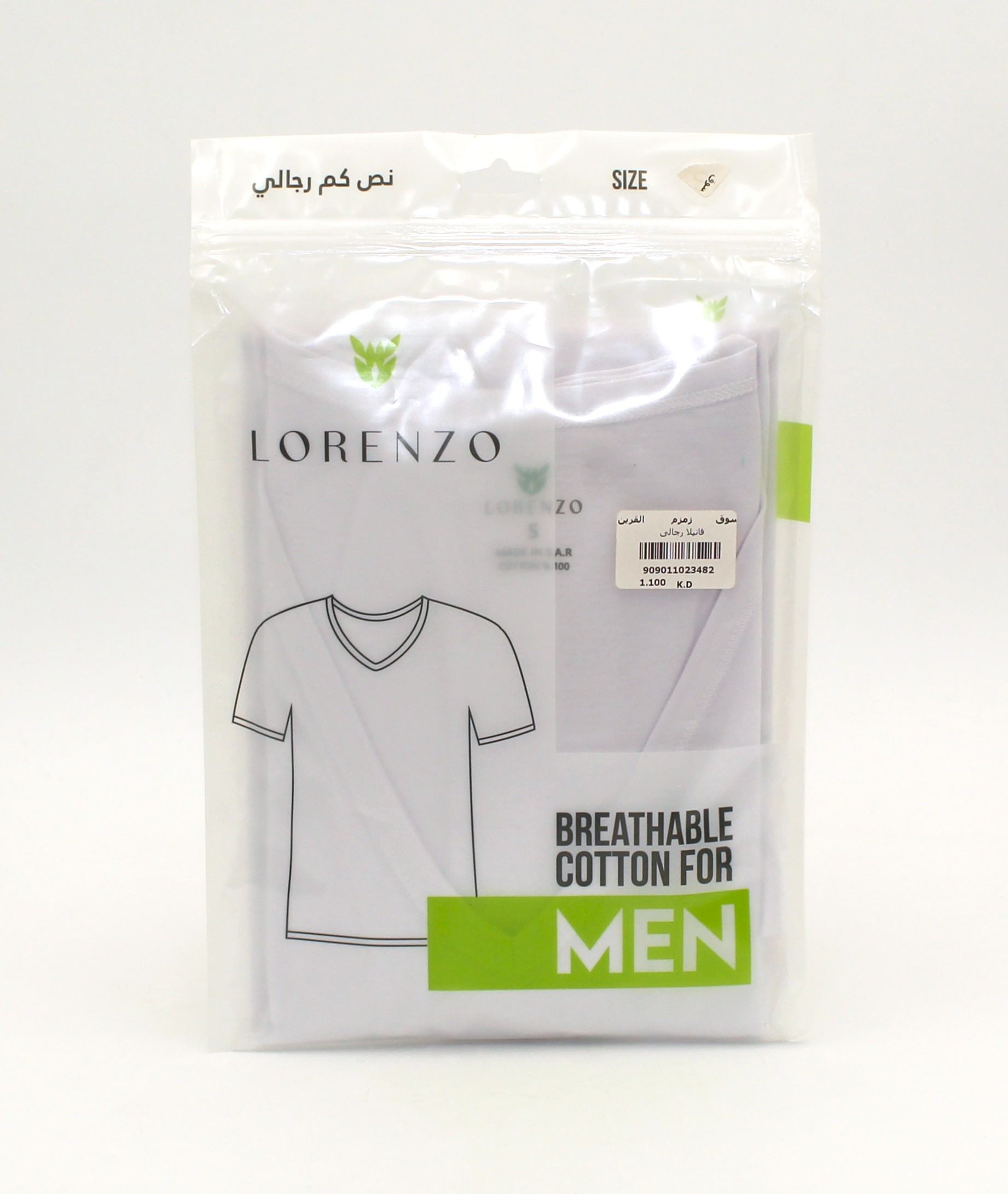 فانيلة داخلية رجالي نصف كم ابيض قطن من لورينزو