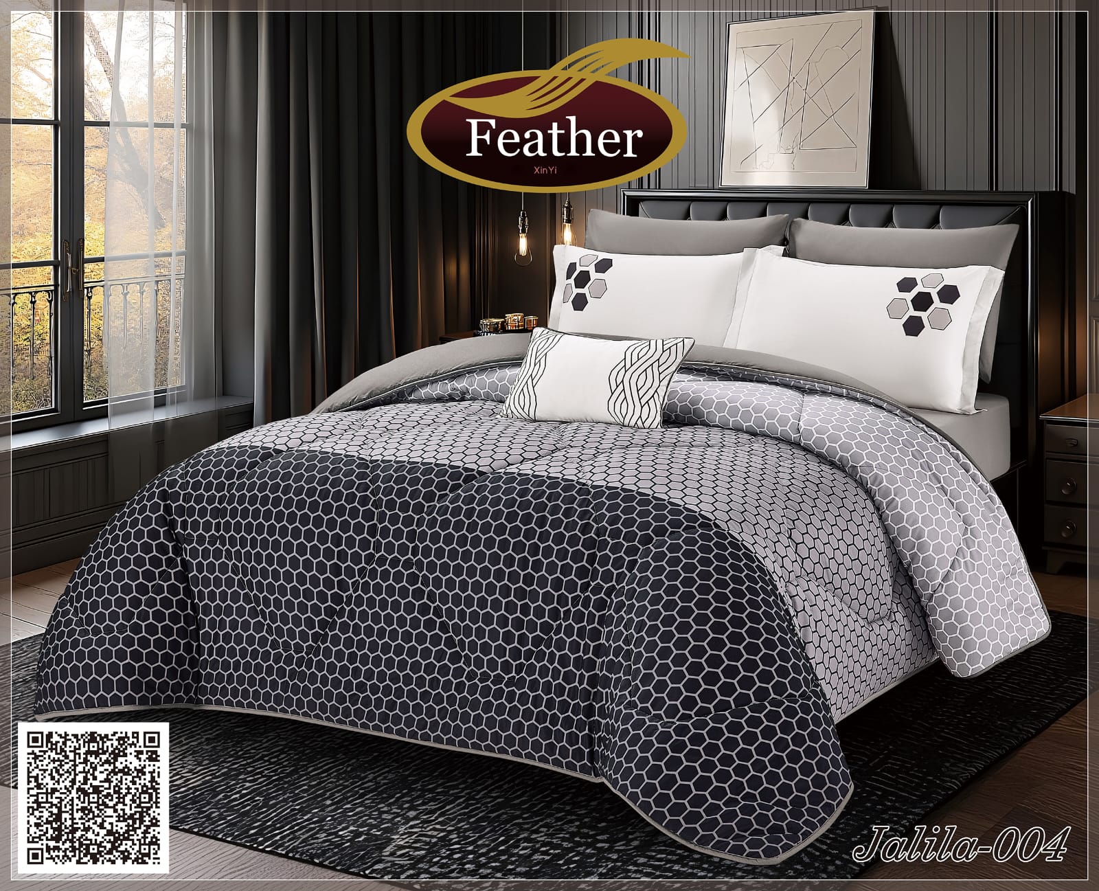 فيذر جليلة ديباج قطن صافي مشجر نفر ونص 4 قطع 240 × 180 سم ( لحاف )