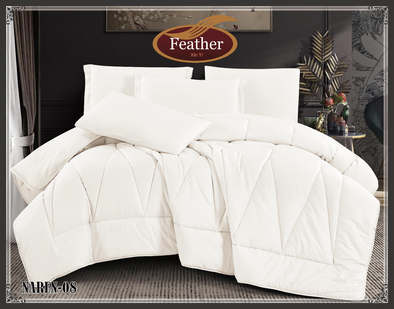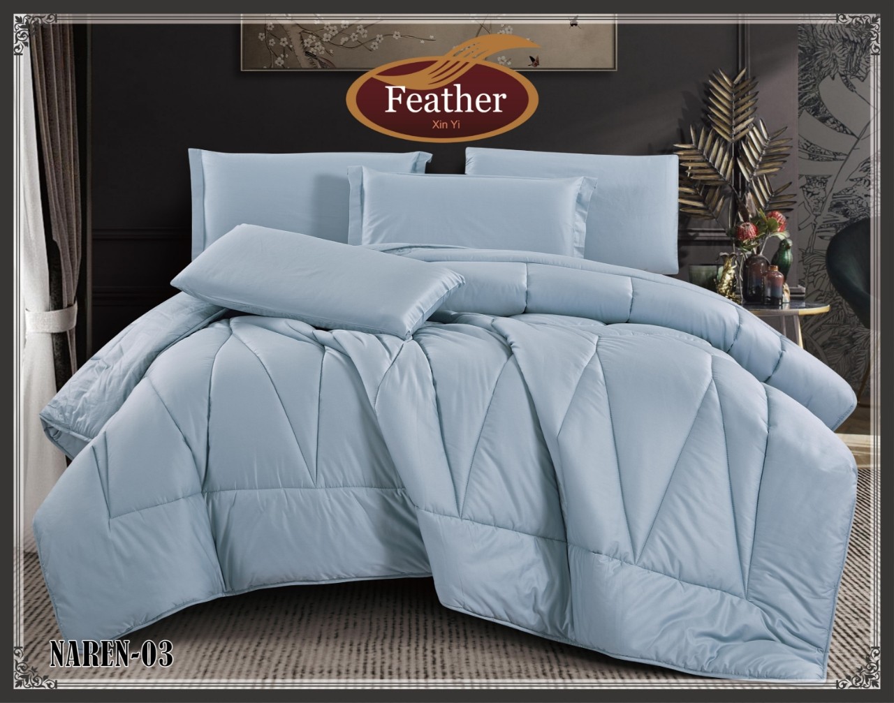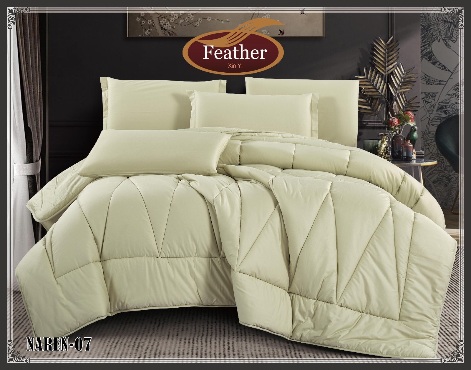 فيذر نارين ديباج قطن صافي سادة نفر ونص 4 قطع 240سم × 180 سم ( لحاف )