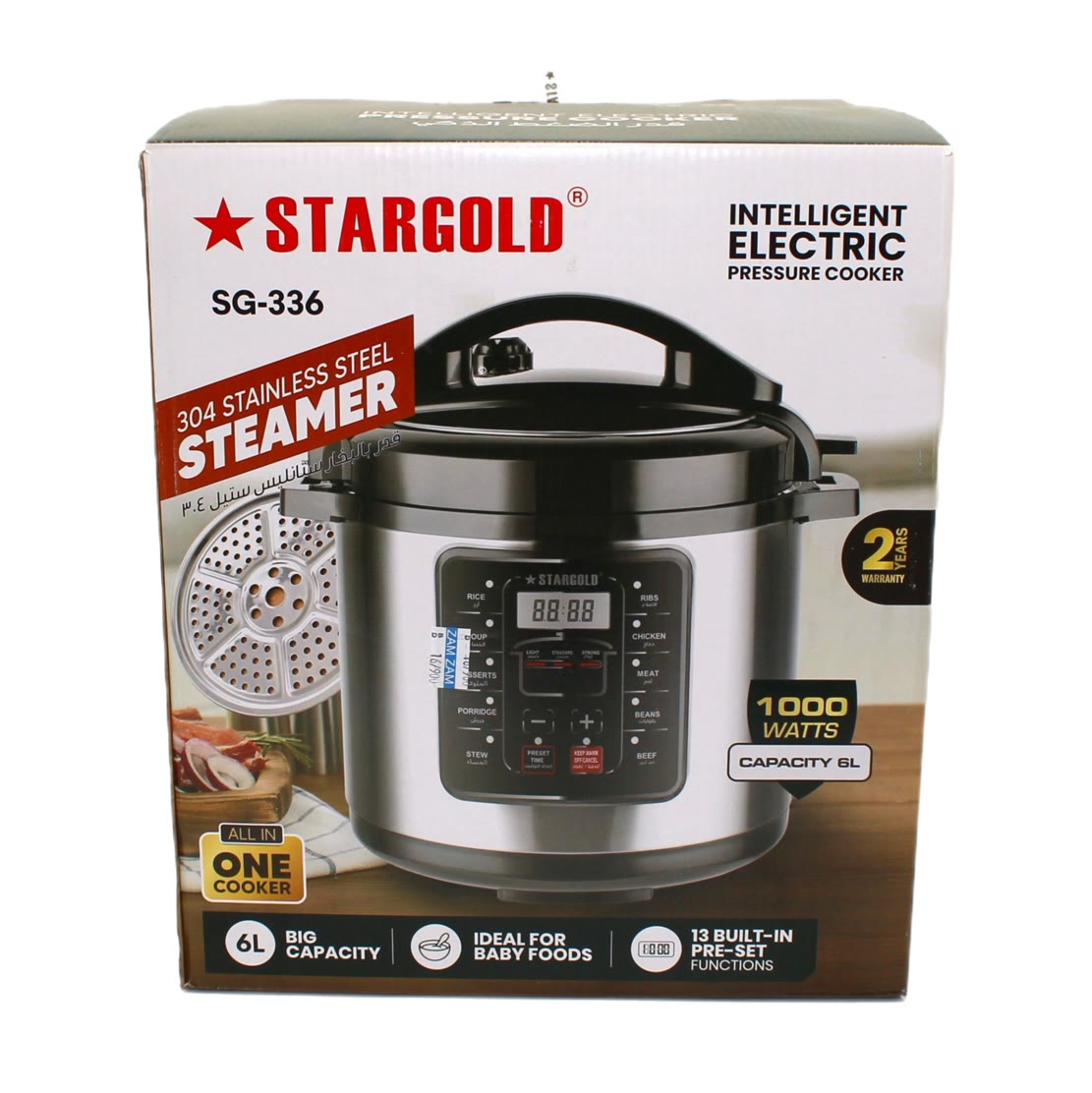 قدر الضغط الذكي 6 لتر 1000 واط من ستار جولد