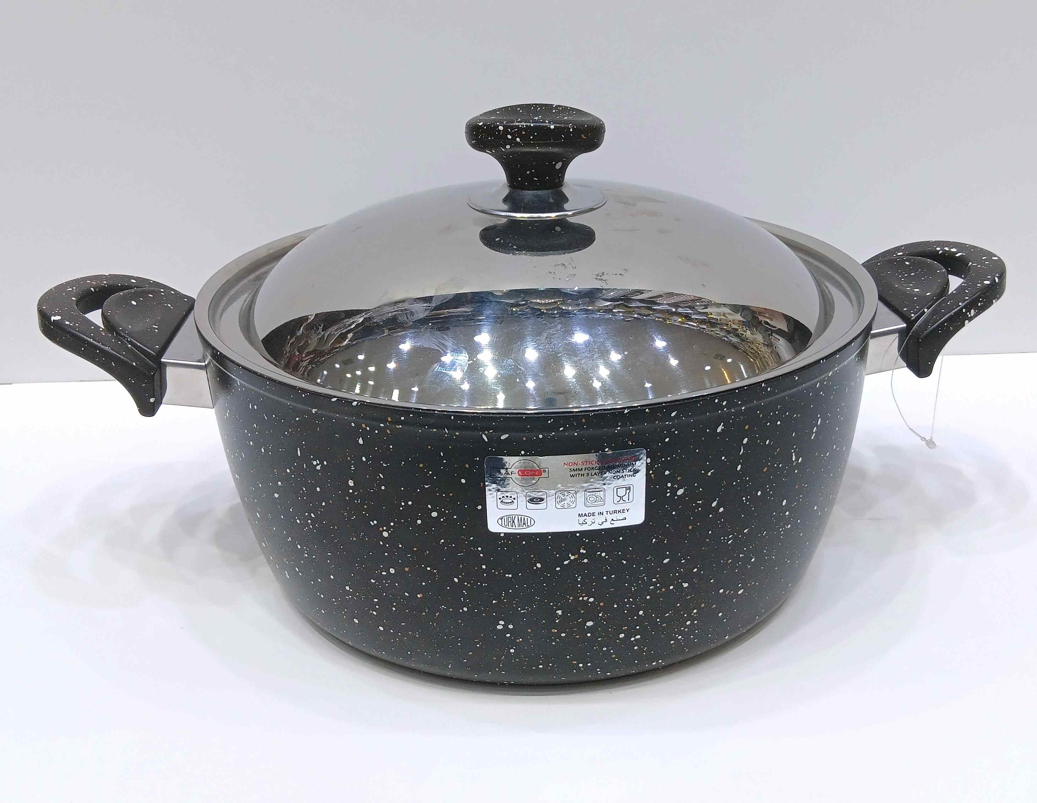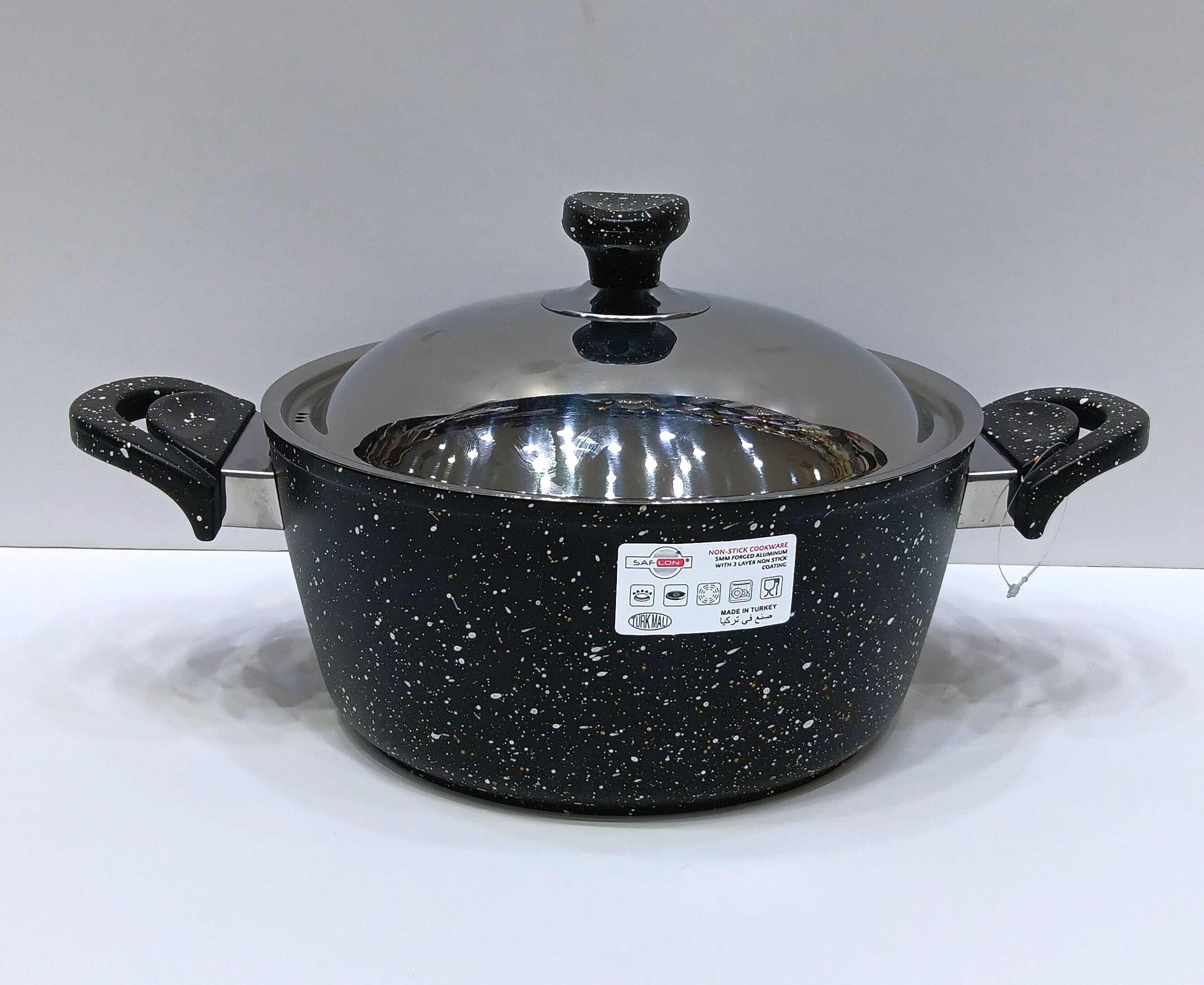 قدر جرانيت تركي من سافلون مع غطاء استيل بلون اسود